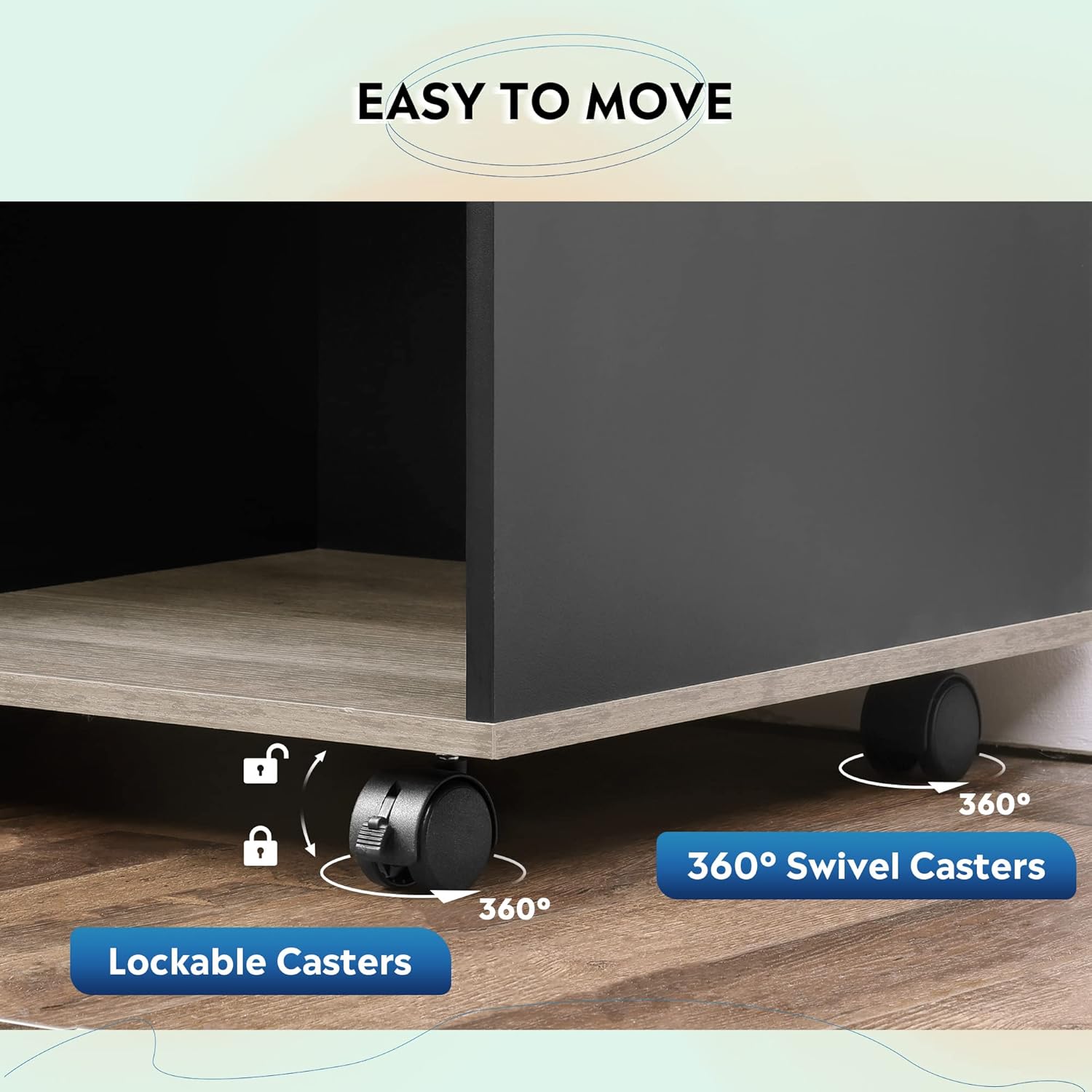 - EASY TO MOVE: Rolling on four wheels, this printer stand can be moved and adjusted in position freely. Built-in brakes on front two casters to keep it in position and add stability.