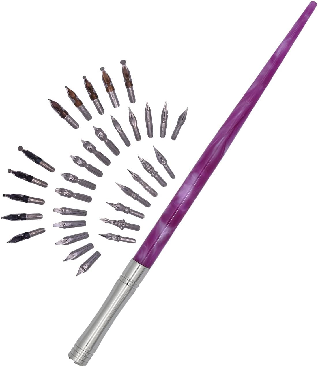 Gullor Resin Dip Pen Handcrafted Calligraphy Set with 33 Nibs for Art, Signatures, Drawing, Caligraphy Kits for Beginners, Fuchsia