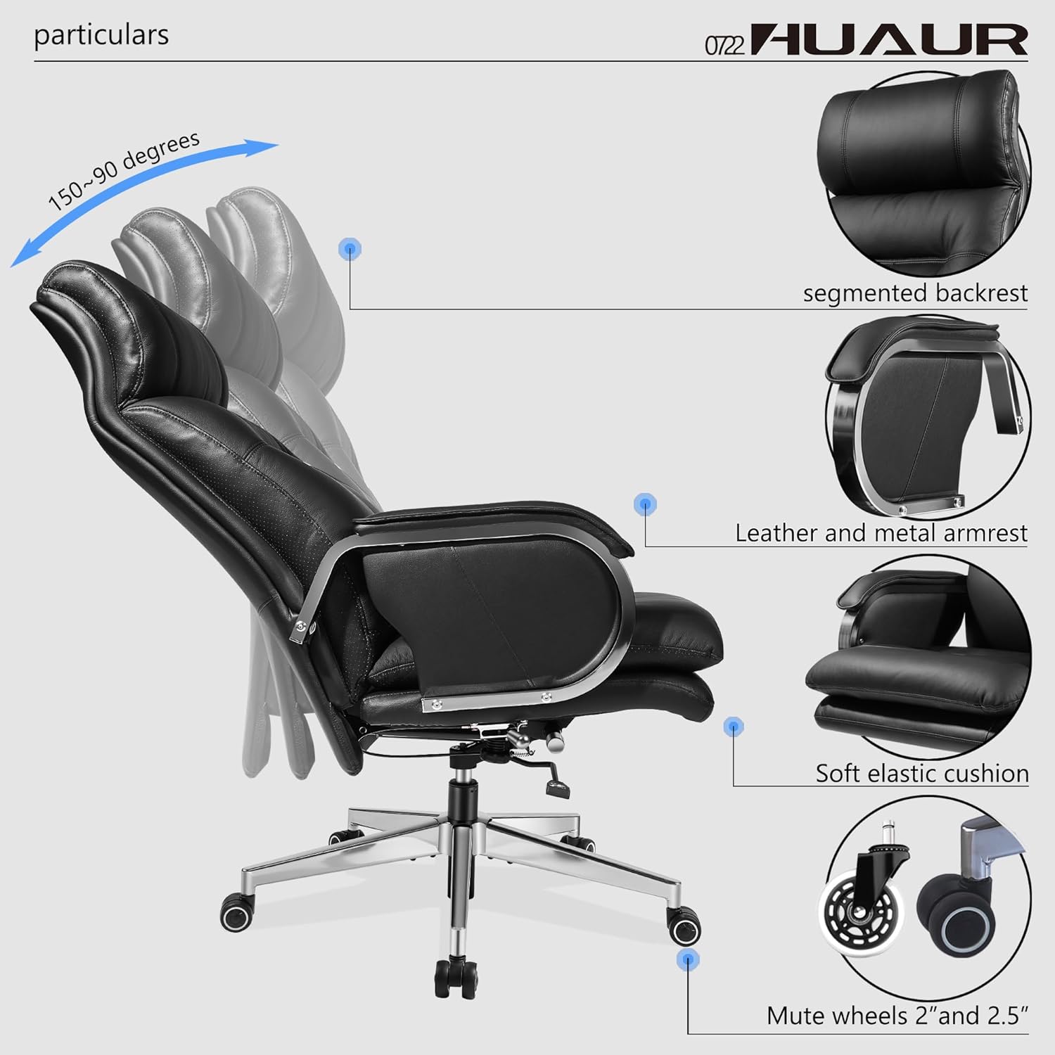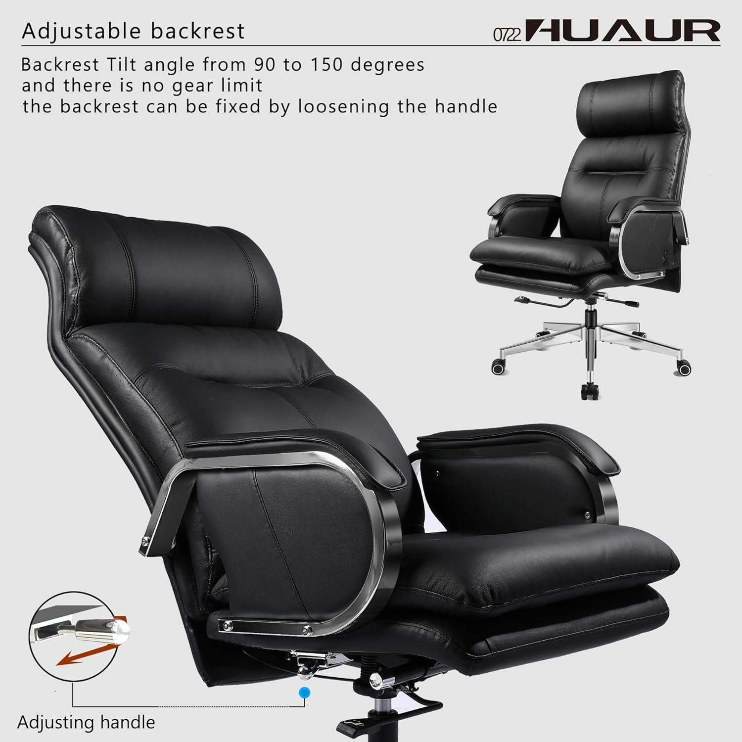 Genuine Leather Modern Executive Chair High-Back Support 90 to 150 Degrees Tilt and Upholstered Home Desk Chair with Base 360LB Capacity Swivel Computer Office Chair (Black)