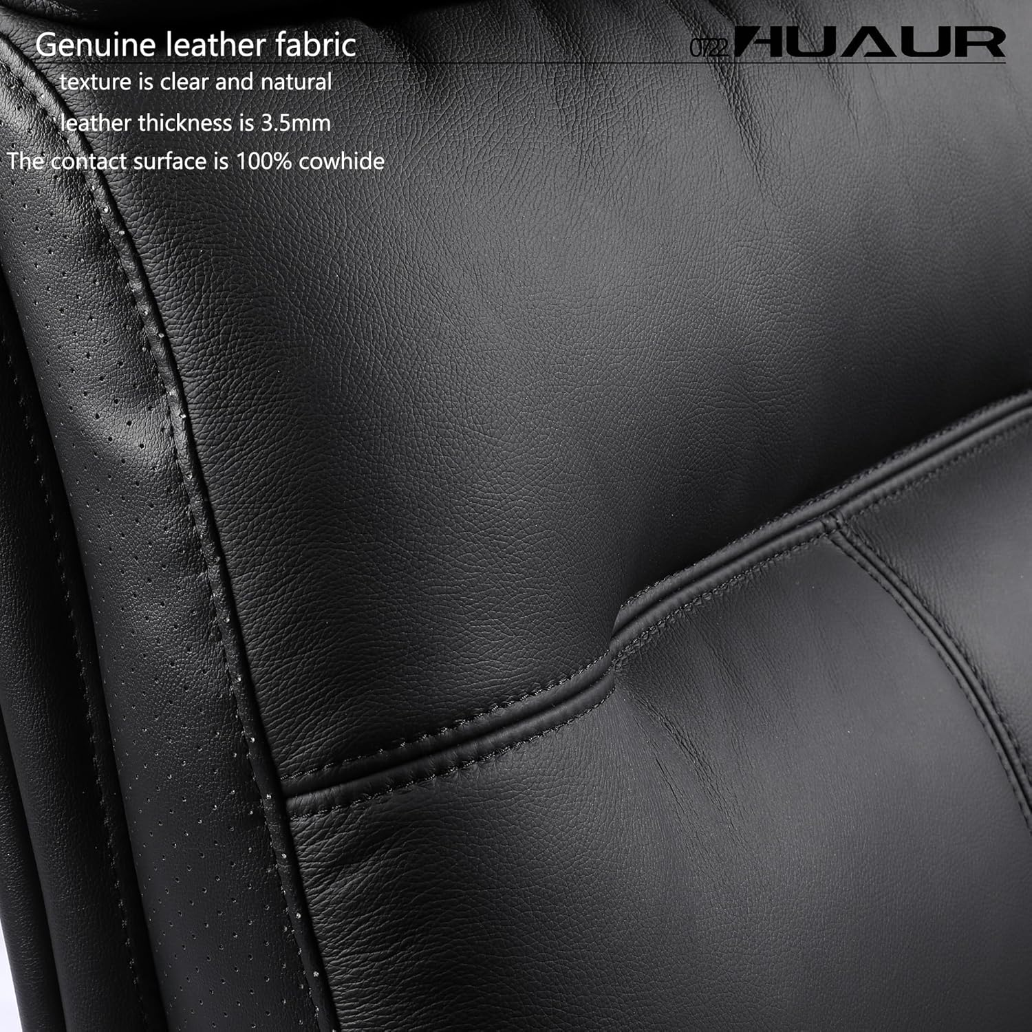 - GENUINE LEATHER FABRIC: The contact surface is 100% cowhide, with clear and natural texture and a special odor. The thickness of genuine leather is 3.5 millimeters. The biggest advantages of natural leather are wear resistance and breathability. The fiber structure of genuine leather can quickly sweat and maintain dryness, If the lifespan of synthetic leather is 36 months, then the lifespan of genuine leather is at least 2-3 times that of synthetic leather, or even longer.