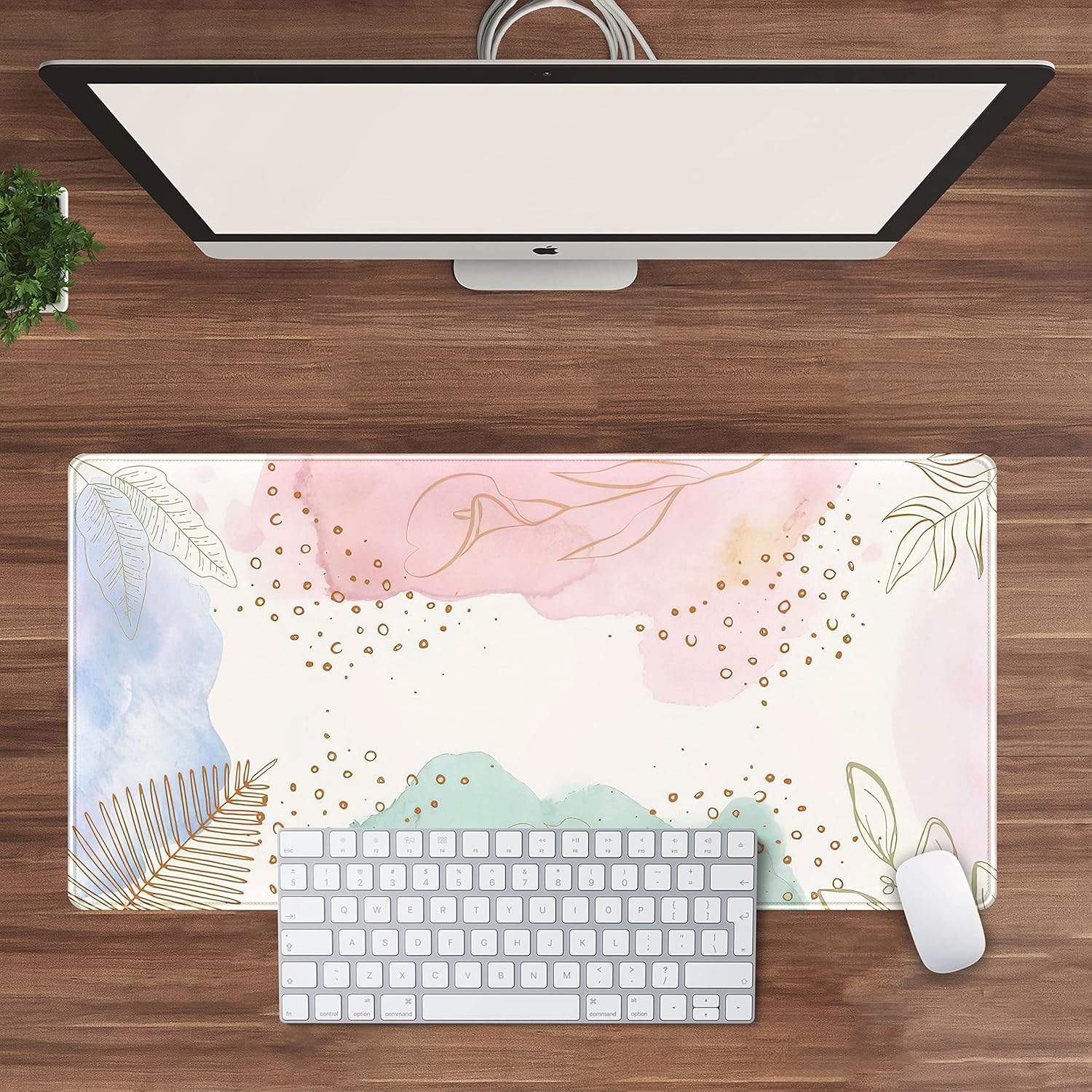 Boho Pastel Painting Mouse Pads, Abstract Mousepad XXL,Extended Mouse Pad for Keyboard & Wireless Mouse,Cute Large Desk Protector Mat Full Desk Gaming Mice Pad for Office Home 31.5x15.75 in