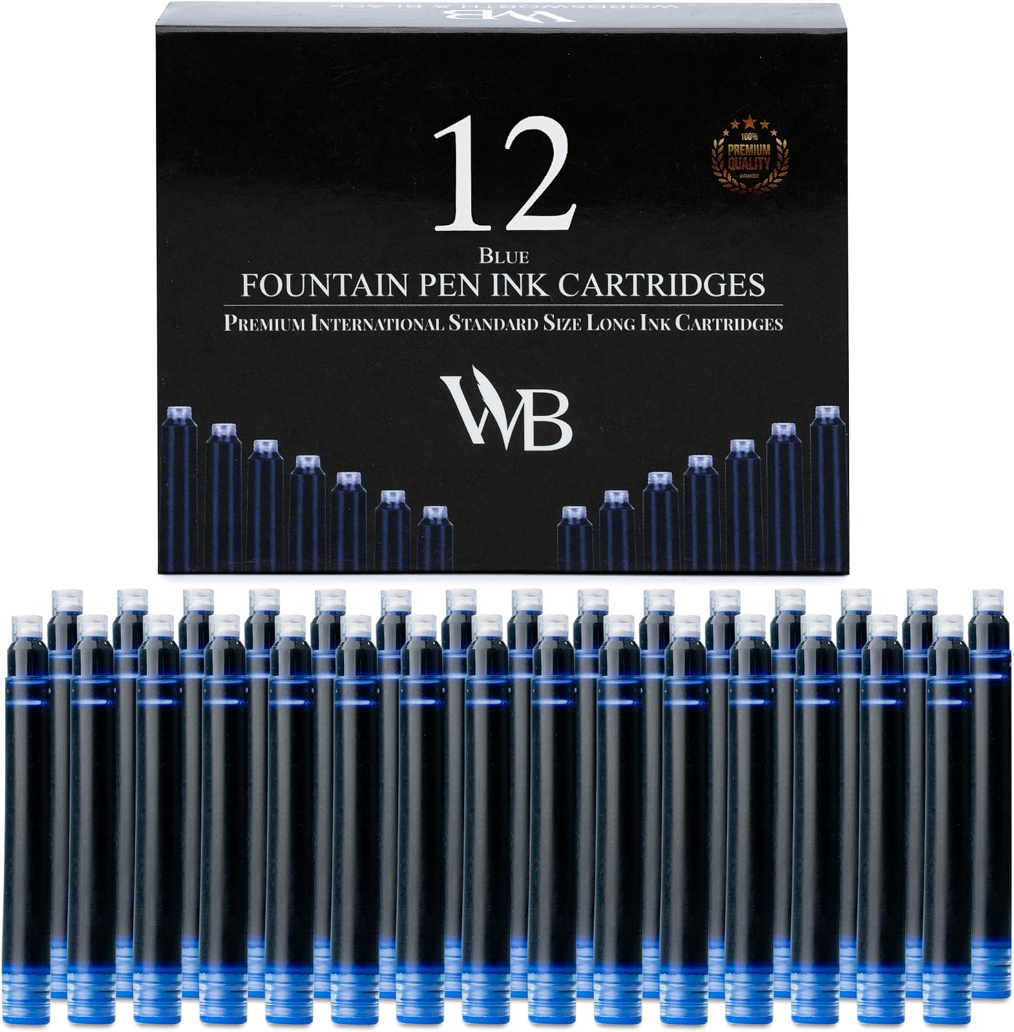 Wordsworth & Black 12 Pack Fountain Pen Ink Refills - Set of 12 Blue Ink Cartridges - International Standard Size - Length APPR 2.3" - Base Diameter APPR 0.24" - Disposable and Generic