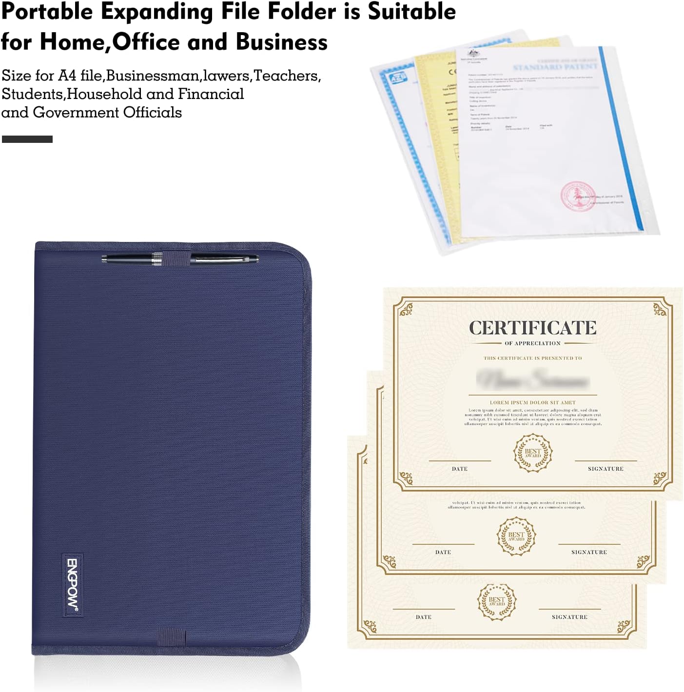 ENGPOW 13 Pocket Expanding File Folder,Fireproof Accordion File Folder Document Organizer with Zipper Closure,Portable Filing Organizer Safe with Colorful Tabs for A4/Letter Size Paper,Files(Blue)
