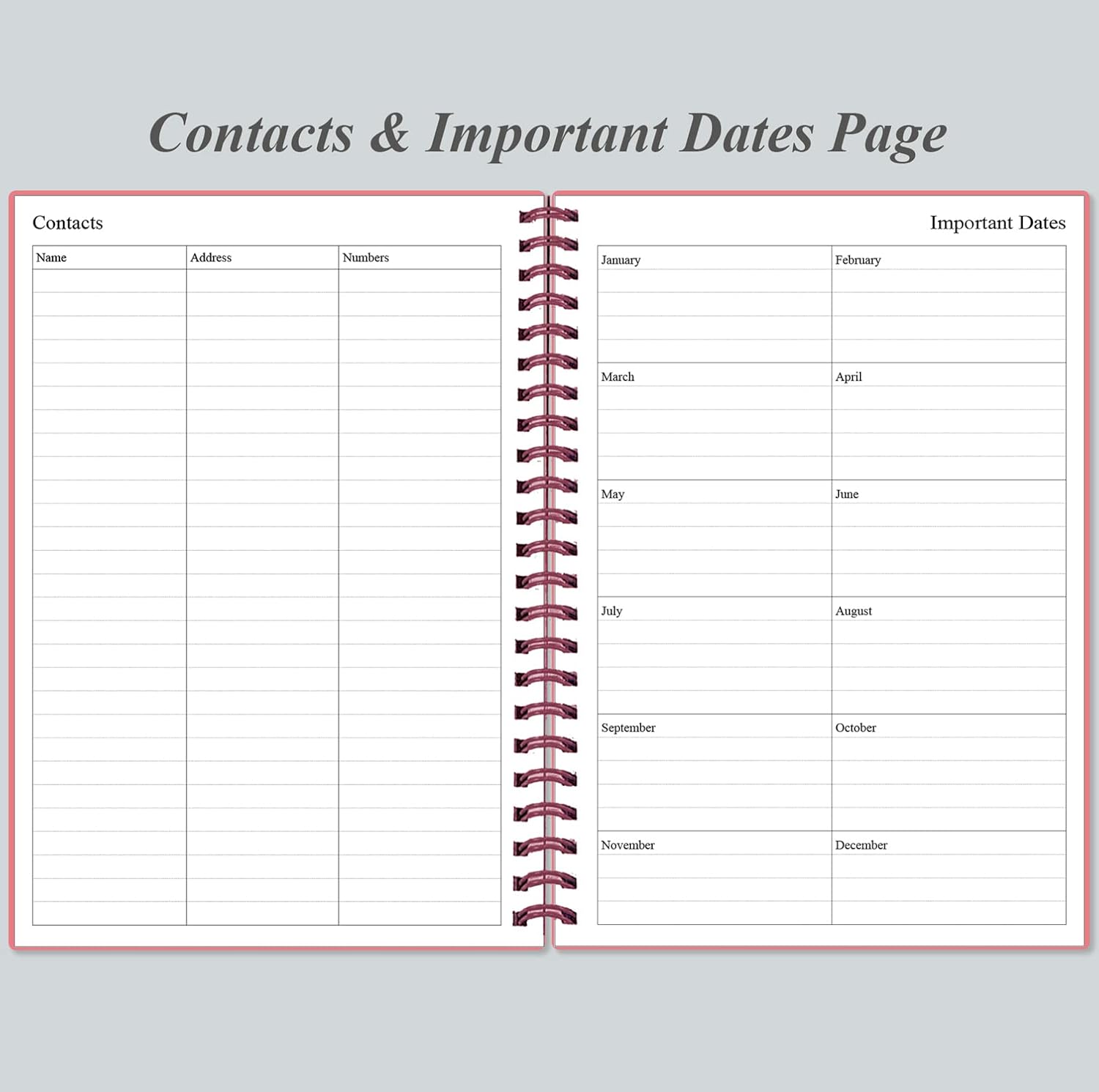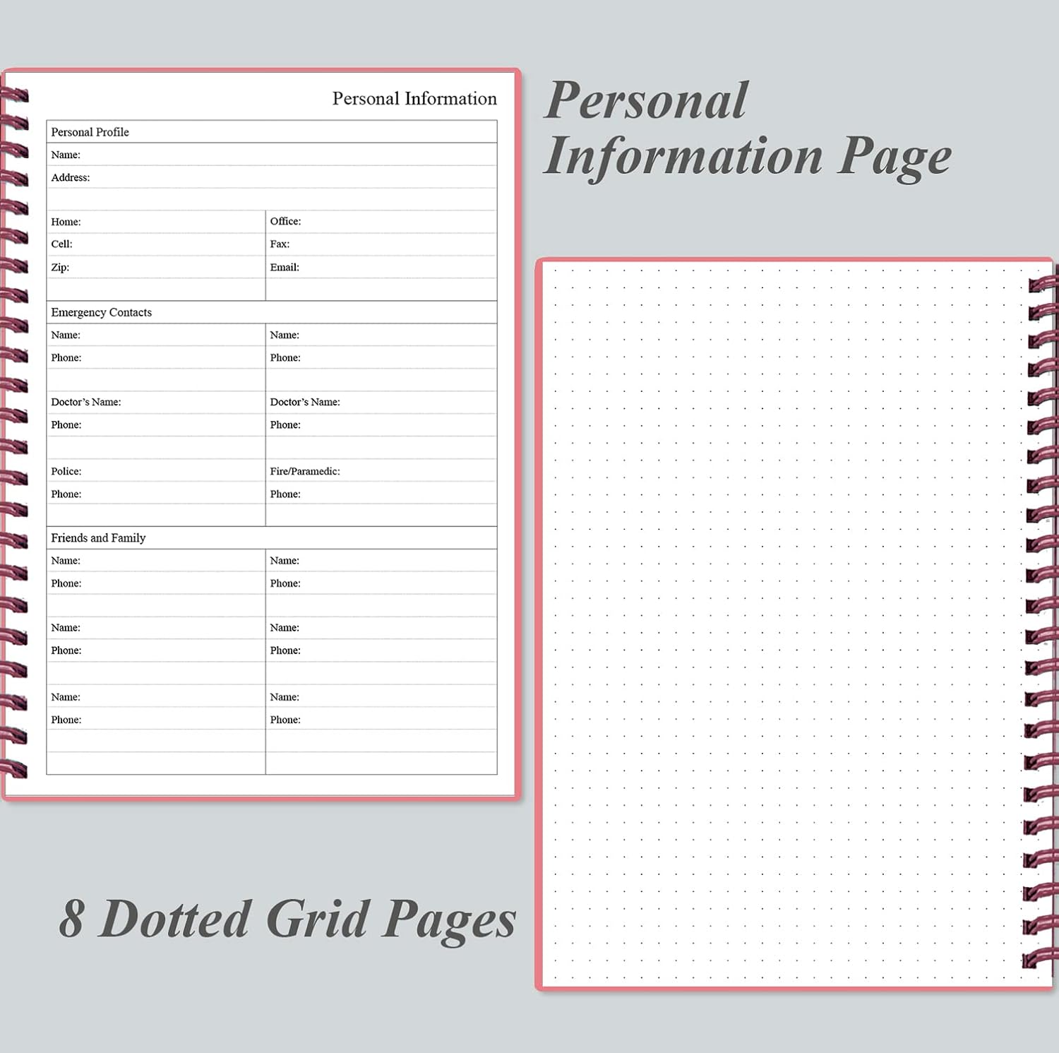 - A5 SIZE - This undated daily organizer size of 8.5 x 5.8 inch, perfect size to fit in your bag.1 quick reference page, contact pages, important dates page, and 75sheet (150 page) daily plan & notes,8 dotted grid pages, Undated appointment planner makes it easy for you to start the planner at any time.