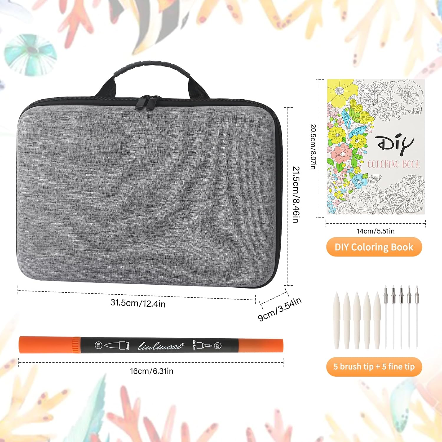 - 【Package List】:This Water based markers set has no duplicate colors. An exquisite organizer case, 156 pcs coloring markers, a coloring book which has a color chart and 10 coloring design, and 5 brush and 5 fine tip as replacements.