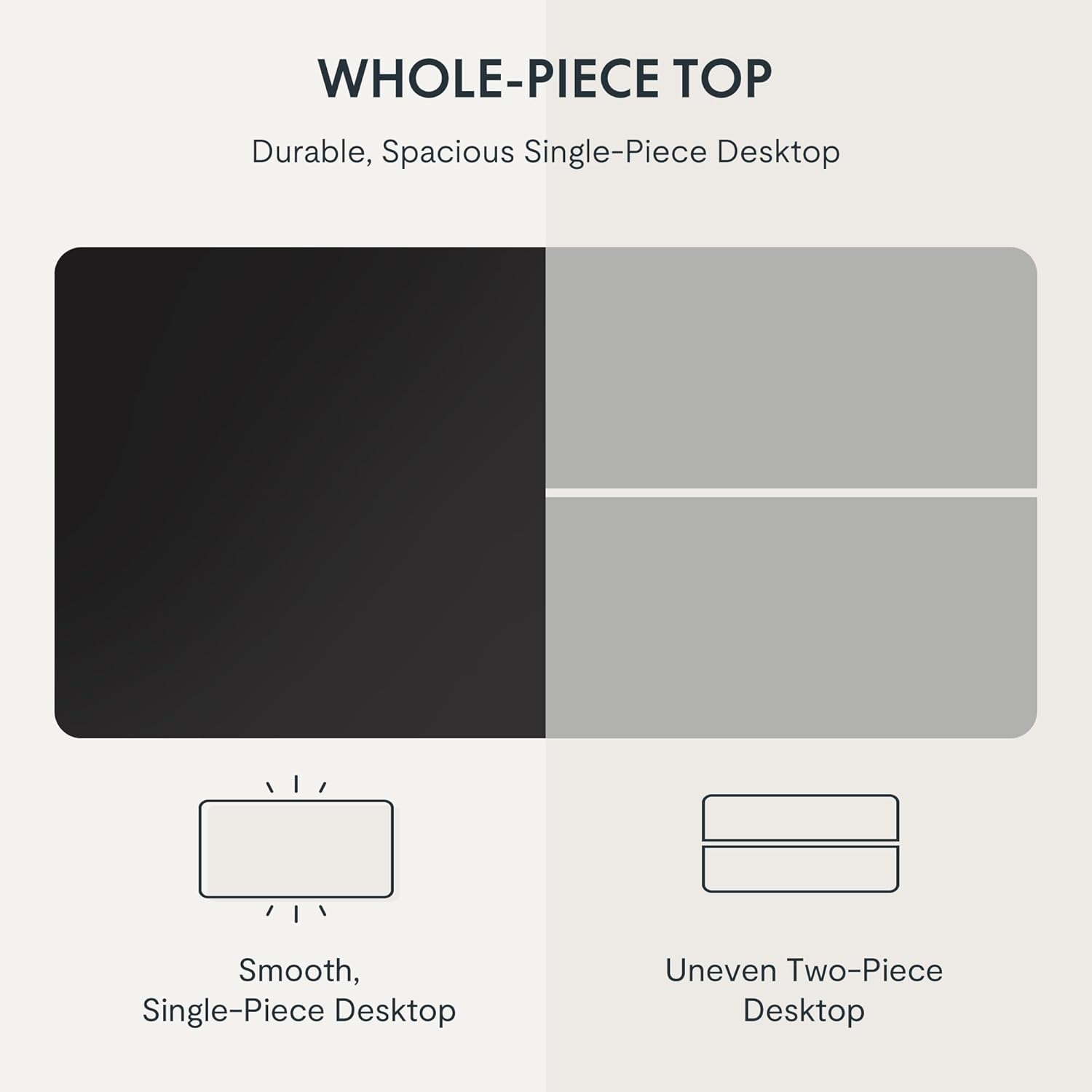 - ăCOZY & ERGONOMIC WHOLE-PIECE WORKSPACEă The spacious 55.1â x 27.5â whole-piece desktop offers ample room for two monitors and a laptop, allowing you to spread out and tackle your workday with ease.