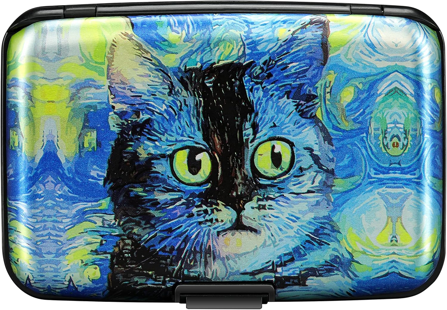 ELFISH Mini RFID Aluminum Wallet Credit Cards Holder Business Card Case Metal ID Case for Men Women(Blue Cat)