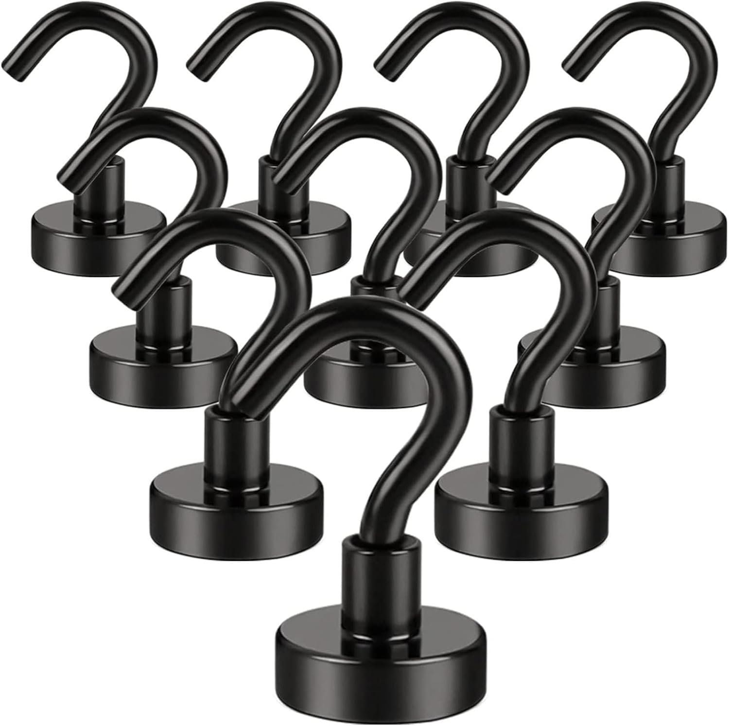 DIYMAG Magnetic Hooks, 30Lbs Facilitate Hook Neodymium Magnet Hooks with Nickel Coating for Cruise,Kitchen, Home, Workplace, Office and Garage etc, 10 Packs (Black)