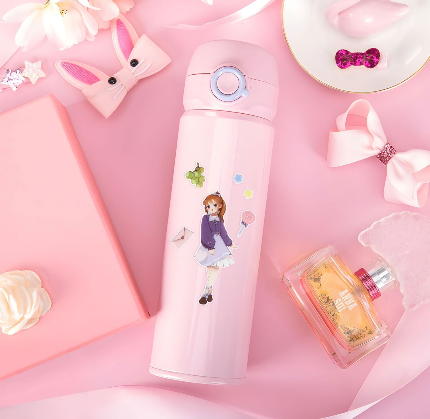 EAMOTOL 100 Sheets Kawaii Girls Stickers Kit for Journaling - Cute Sweet Cartoon PET Transparent Collage Scrapbooking Supplies Sticker Decal for Junk Journals Handbook Laptop Cards DIY Arts Crafts