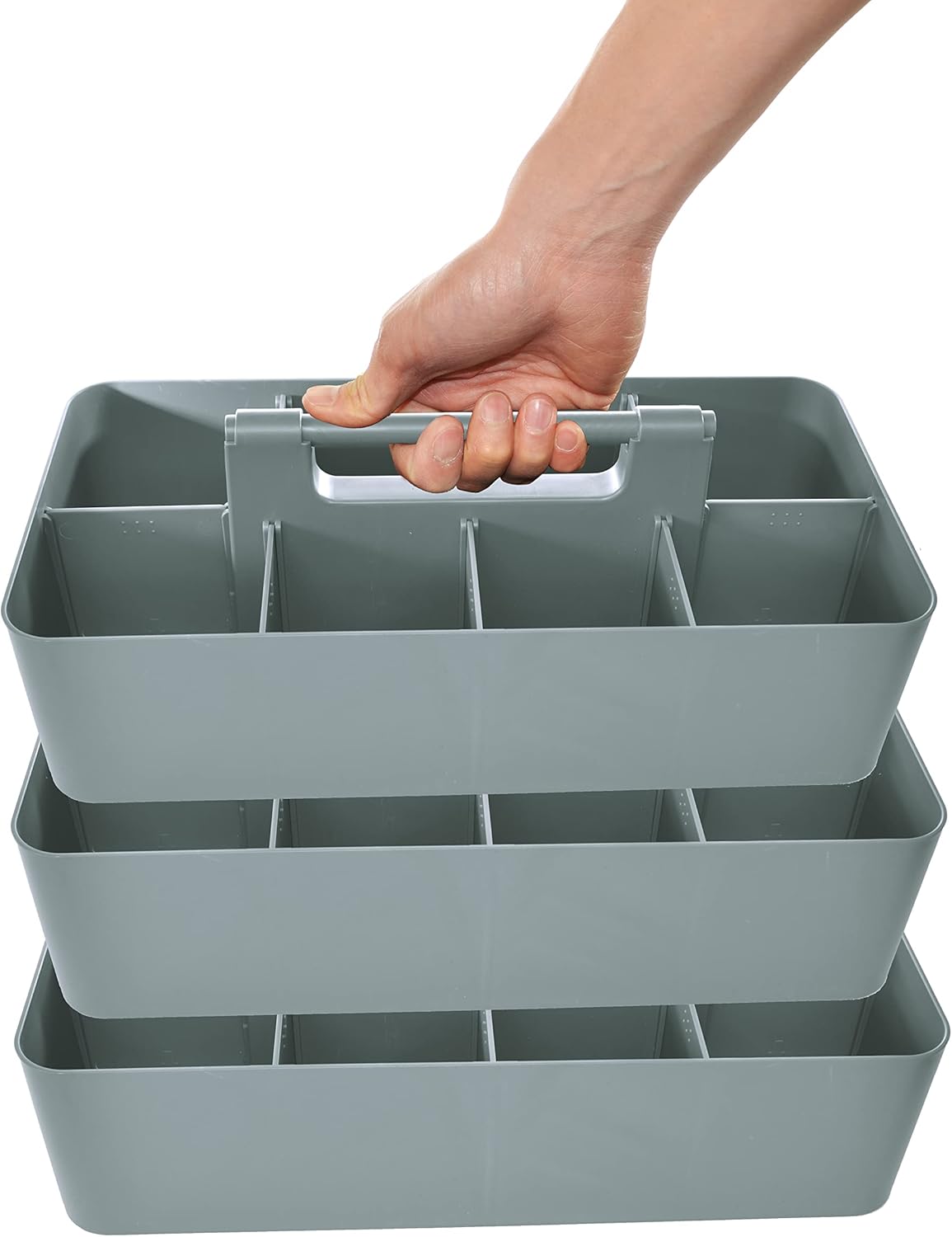 -Large Portable Caddy, DIY Dividers, 8 Compartments, School Office Supplies Home Business Organizer,Portable Basket with Handle Storage Made in USA (3 PACK, Orion Gray)