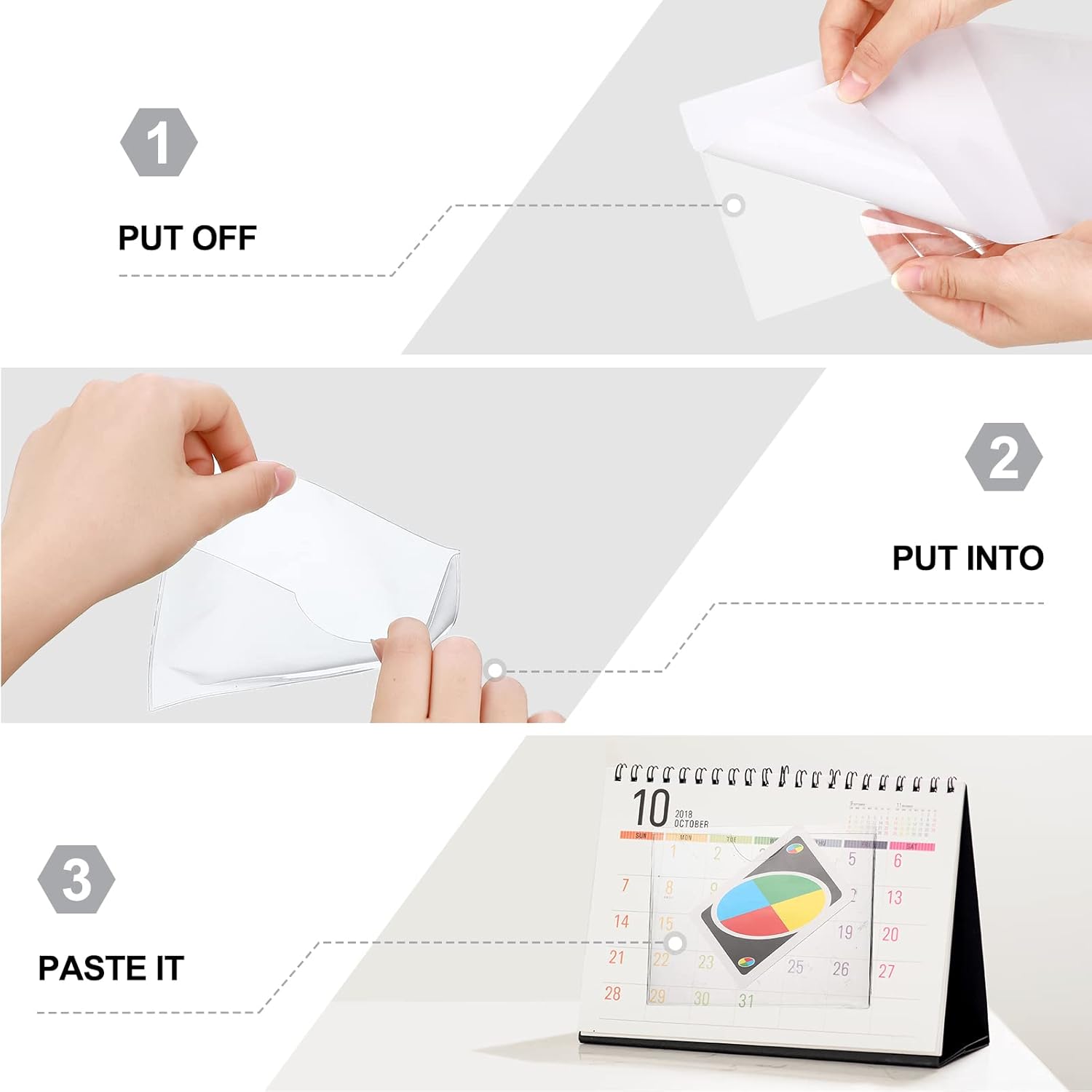 - Clear and Self Adhesive Design: our plastic business card holder uses a transparent design, you can clearly see the information on the card, so you can easily understand what you want to know; It also uses a self adhesive design, you just need to peel off the back sheet, and it can be attached to any smooth surface