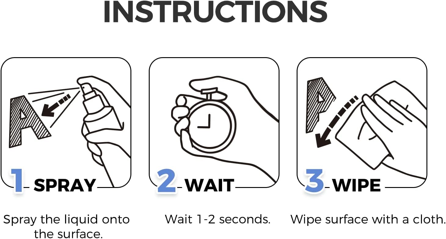 - Easy to Use: Spray the liquid onto the surface and wipe it with a cleaning cloth. For old/set ink, spray and let the cleaner sit for about 1 minute before wiping