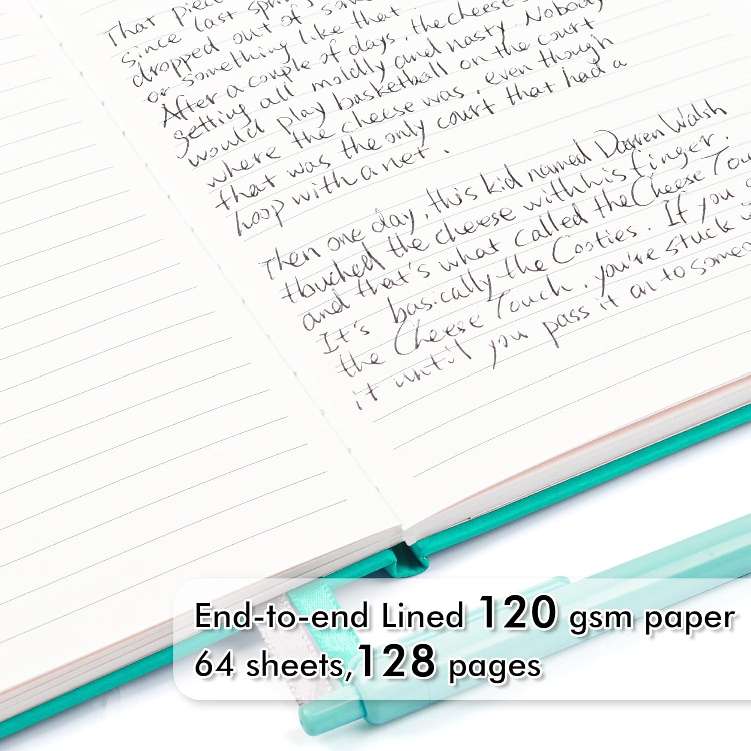feela 5 Pack Notebooks Journals Bulk, Hardcover Notebook Classic Ruled Lined Journals with Pen Holder for Women Girls School Business Supplies, with 5 Black Pens, 120 GSM, 5.1”x8.3”, A5, Aqua