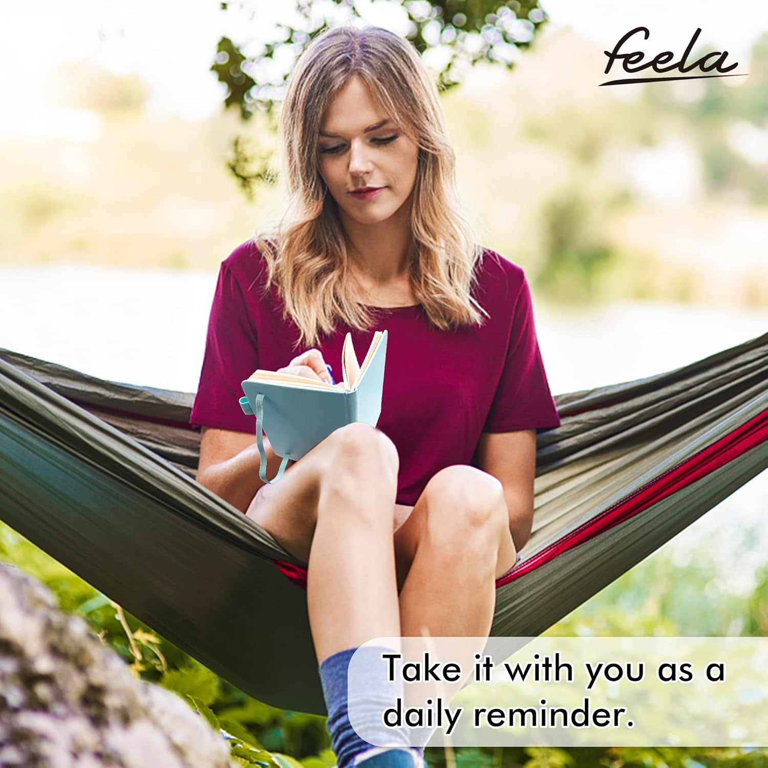 - Feela 6 Pack College Ruled Sky Blue Notebooks contains 6 college ruled sturdy cover notebooks and 6 Black Retractable Pens. Each of the notebooks measures 3.5” x 5.5”, which is perfect to carry and easily held by young girls and boys. These black cute pens are customized to be placed in the pen holder, which is pretty convenient.