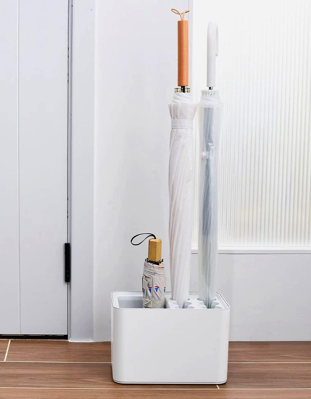 GeLive 10 Hole Umbrella Rack Stand Holder with Drip Tray Space Saver Organizer Fits Entryway Corner Home Office Decor, Hold 10 Umbrellas (White)