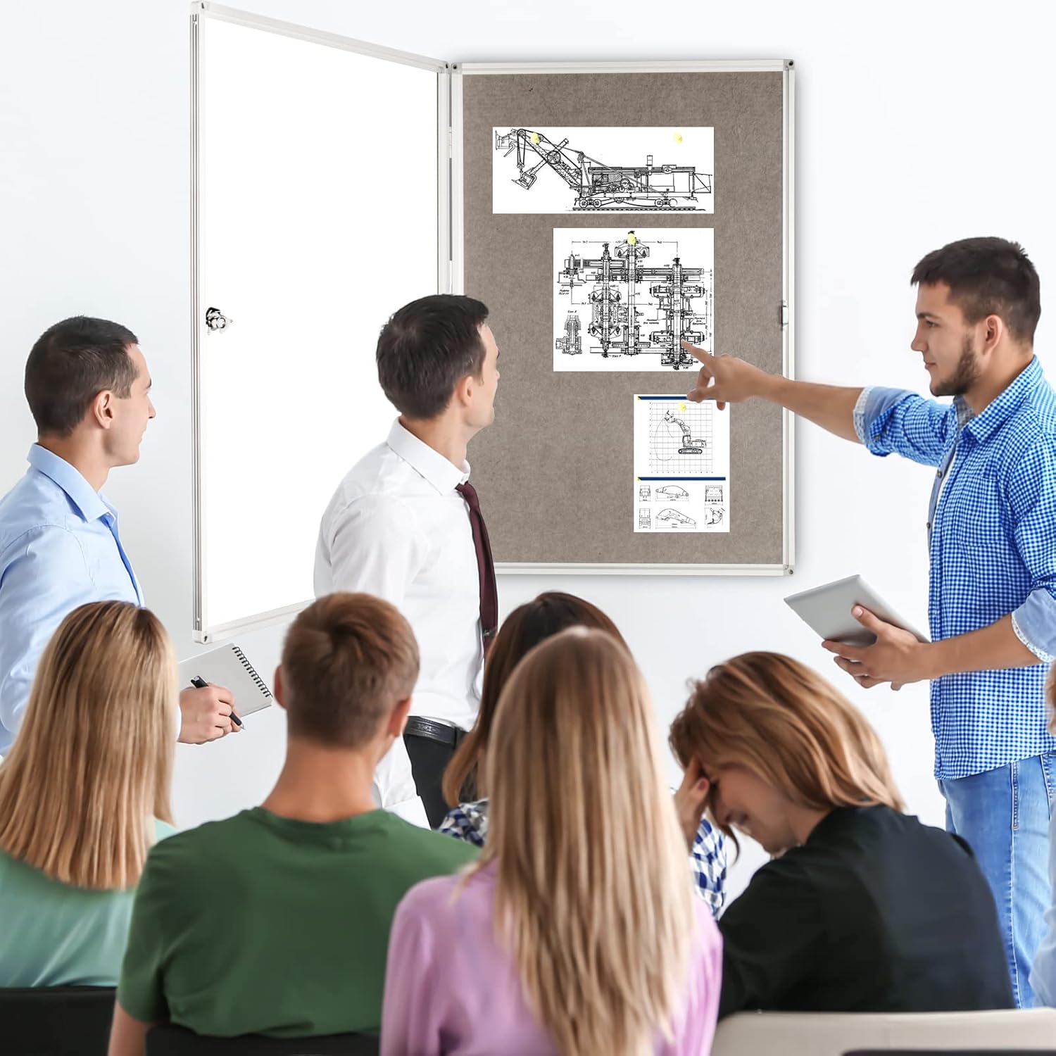 Enclosed Bulletin Board Lockable Display Case Message Board with Locking Door for Indoor, Grey Felt, Aluminum Frame, 36 X 24 in