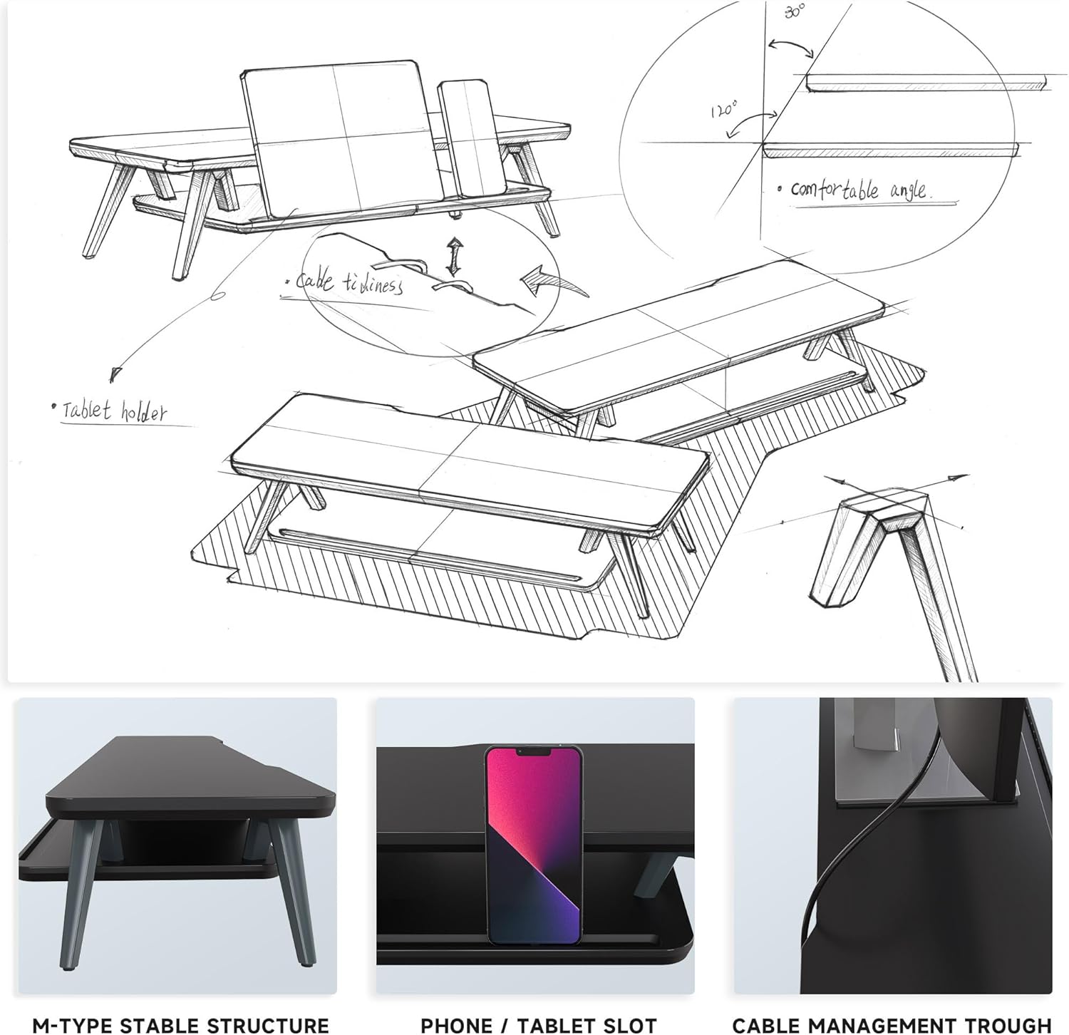 - 【2 Tier Desktop Organizer】At longest 23.6inch wide, It has a universal device holder slot and a high capacity compartments. You can easily store your office accessories & supplies under your monitor stand to keep your desktop tidy. Our monitor stand rise comes with cable management slots that can make your cord stay organized.