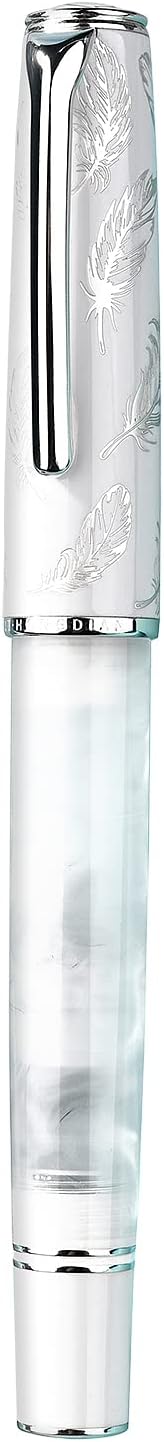 - ā Elegant Design - The pen cap is plated with silver feathers through jewelry processing. A cute bird is also engraved on the top. The white acrylic pen body is crystal clear, like ripples of clouds, and shows gorgeous and delicate texture in the light.