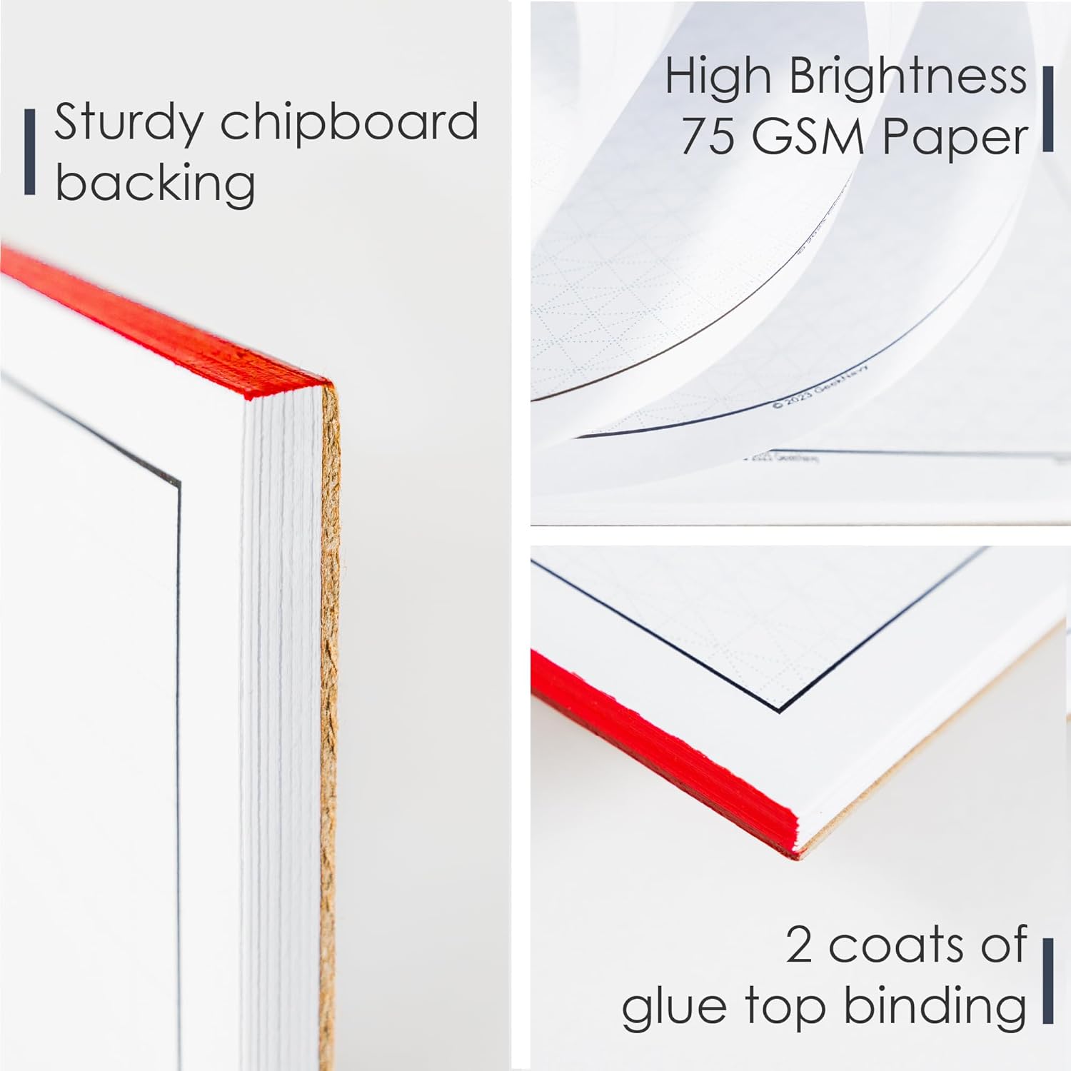 - Optimal Durability & Brightness - Made with 20lb (75 gsm) high brightness paper (96 level) and supported by a thick 50pt chipboard backing, offering a sturdy and clear writing surface.