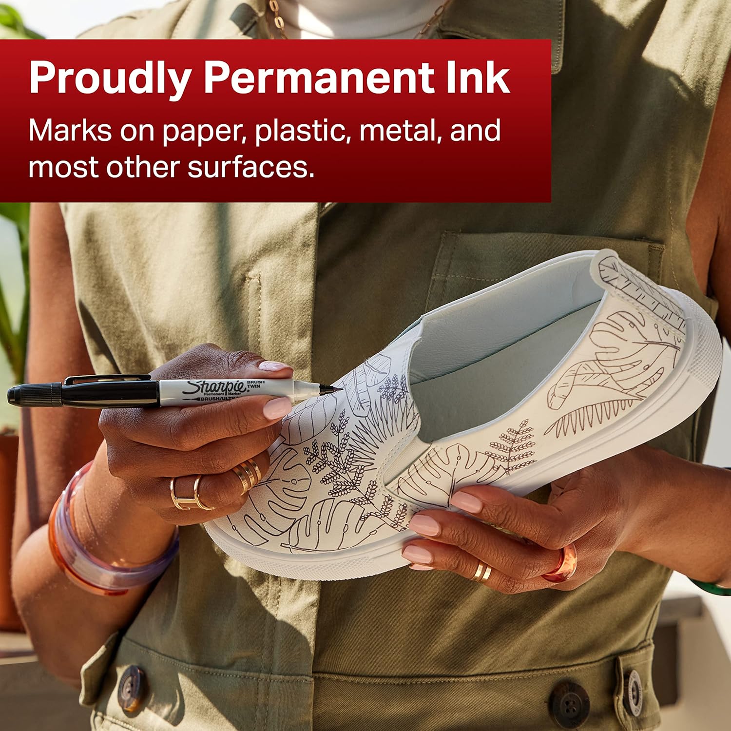 Sharpie Brush Twin Permanent Marker Brush Tip Marker and Ultra Fine Tip Black 12 Count