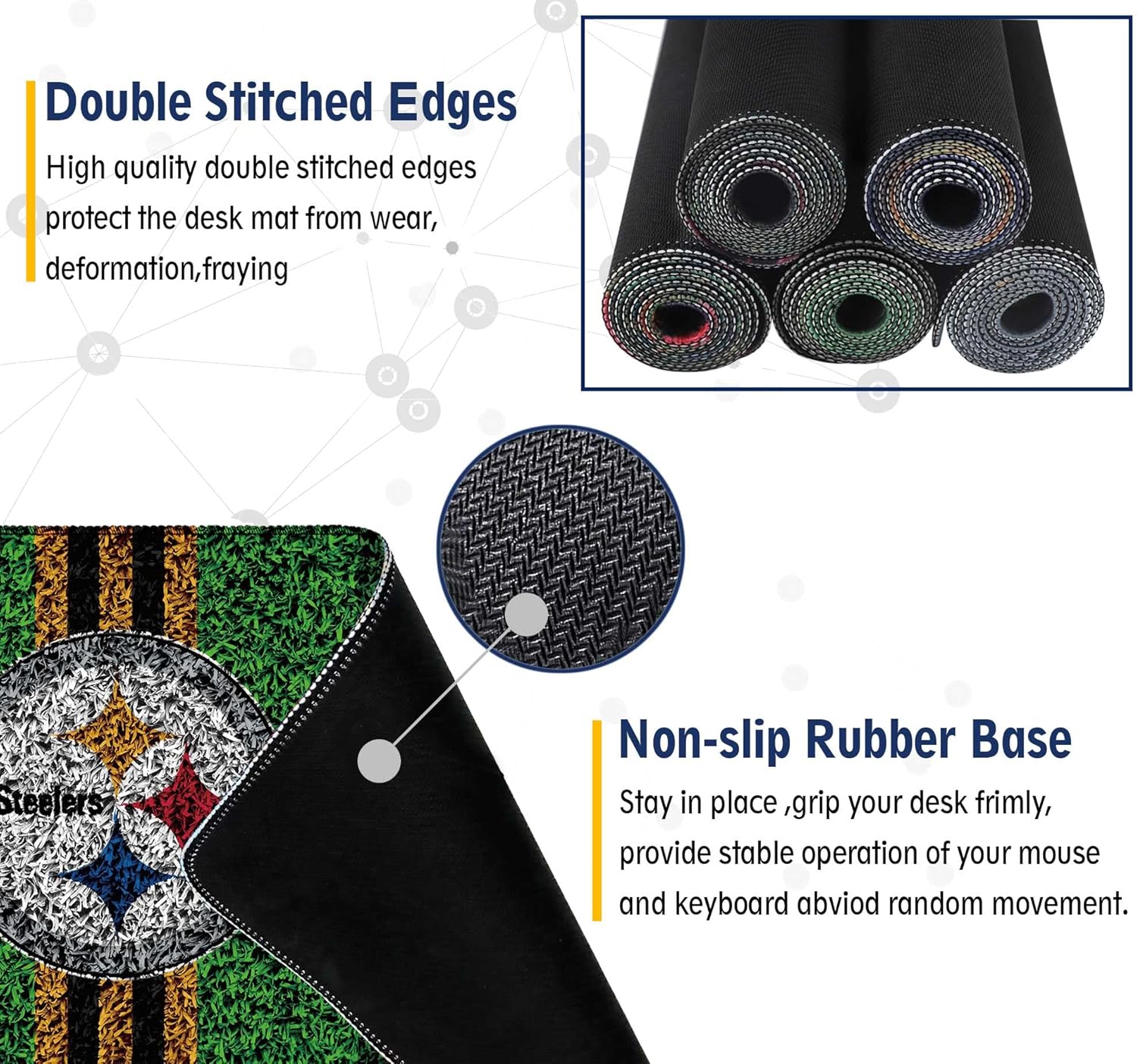 - 【 Extended Large Mouse Pad Size 】 Large Desk mat's measure: 31.5 x 15.7 inches. The desk pad is large enough to have a mouse, gaming keyboard, and other desk items while maintaining protecting your desk all the time. Just immerse into your work or games without worrying about the annoying mouse pad movement.