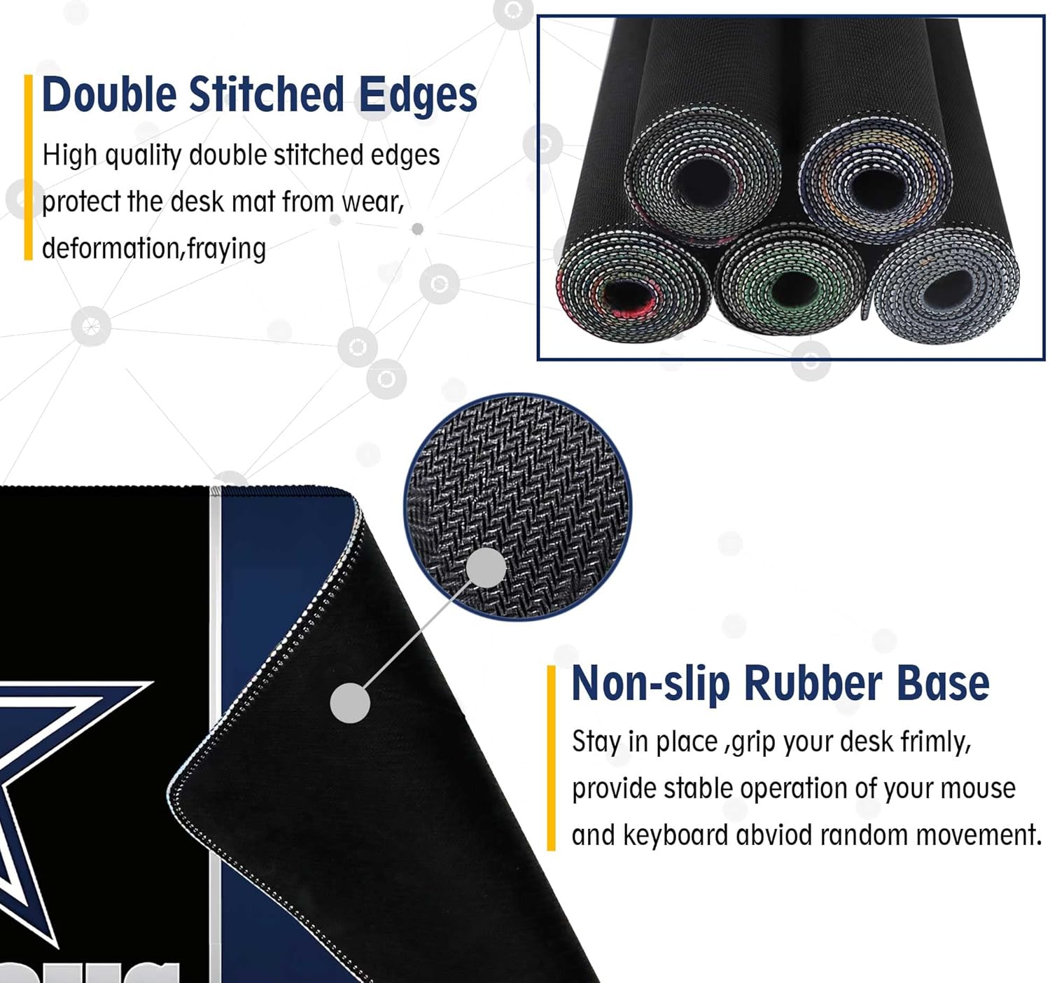 - 【 Extended Large Mouse Pad Size 】 Large Desk mat's measure: 31.5 x 15.7 inches. The desk pad is large enough to have a mouse, gaming keyboard, and other desk items while maintaining protecting your desk all the time. Just immerse into your work or games without worrying about the annoying mouse pad movement.