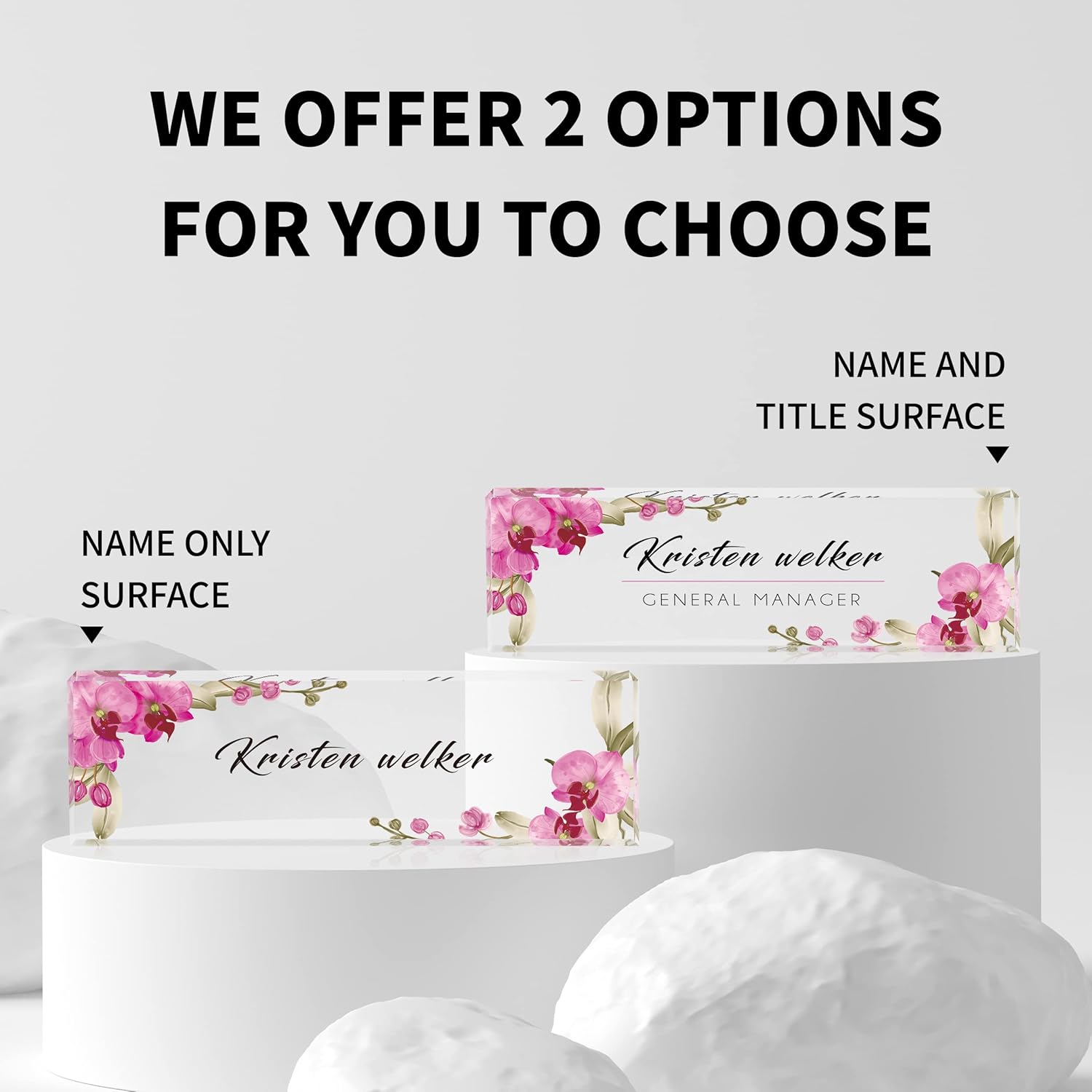- HIGH QUALITY - Personalized desk name plates are made of high-quality crystal-clear acrylic block, it is not heavy but durable. This office name plate will stand out on any desk!