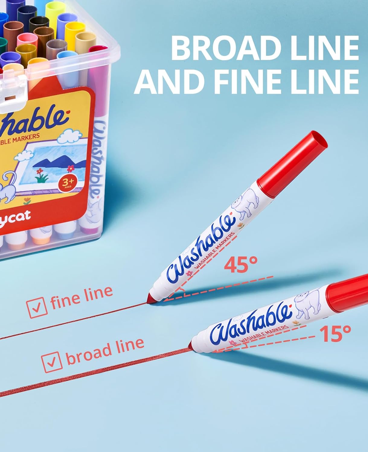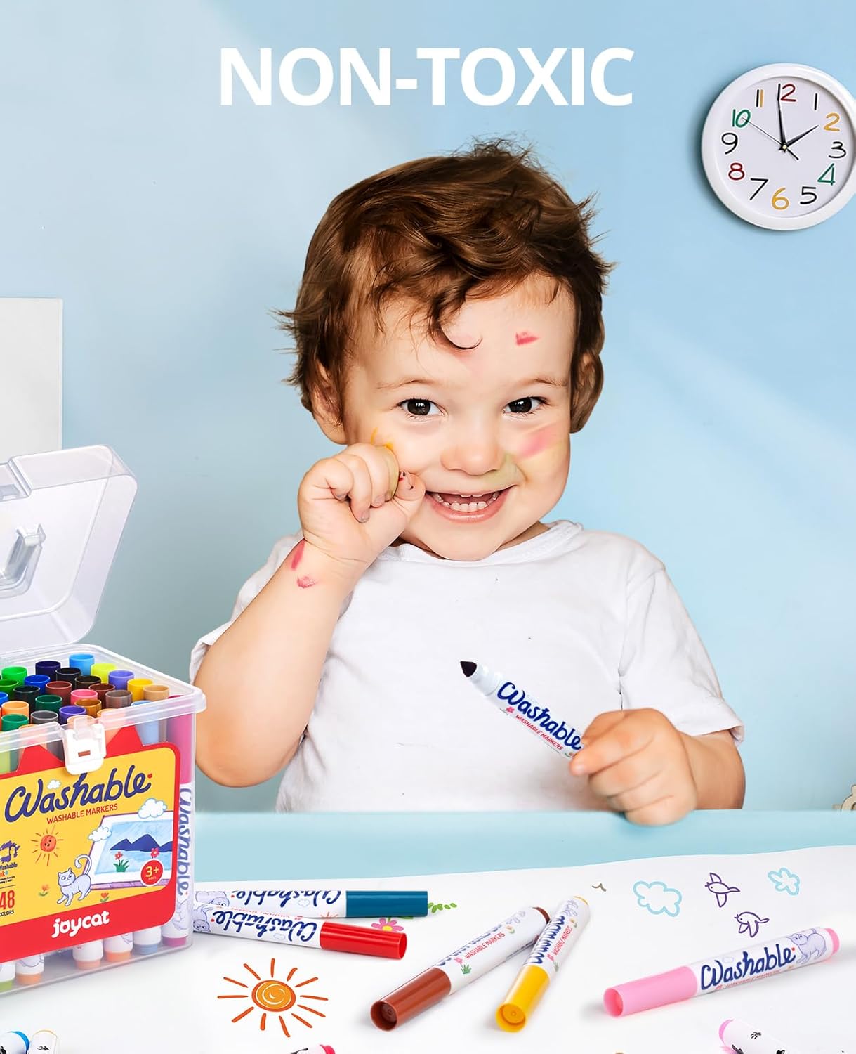 - 【SAFE & NON-TOXIC】Made with non-toxic materials, the washable marker kit is great for kids ages 3 & up. Each of the markers meets the requirements of ASTM-D4236.