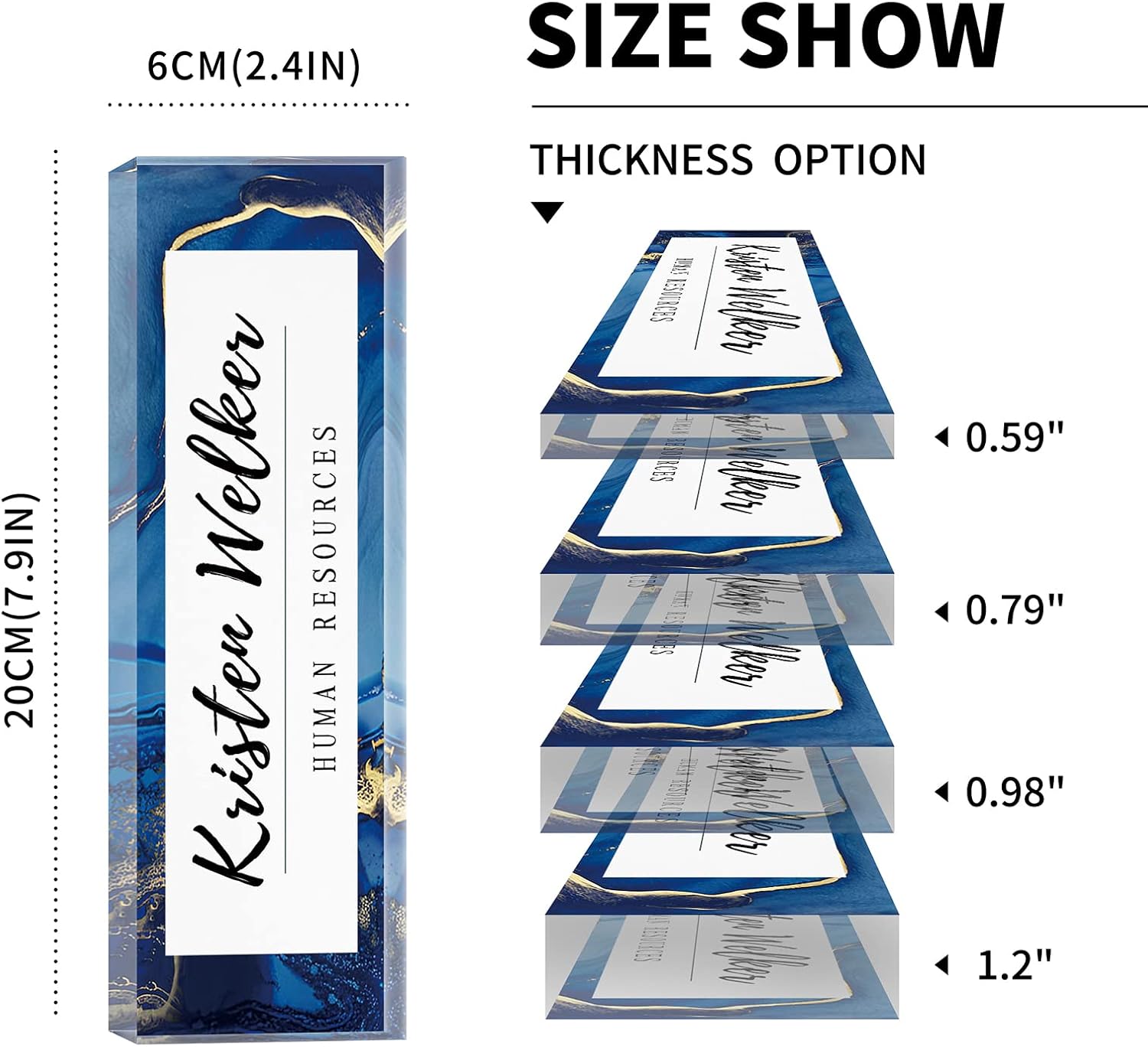 - HIGH QUALITY - The Personalized Name Sign Plates Are Made Of High Quality Crystal Clear Acrylic Blocks. This Office Nameplate Will Stand Out On Any Desk!We use high-tech UV printers to print on quality clear acrylics glass so you can visualise your memories.
