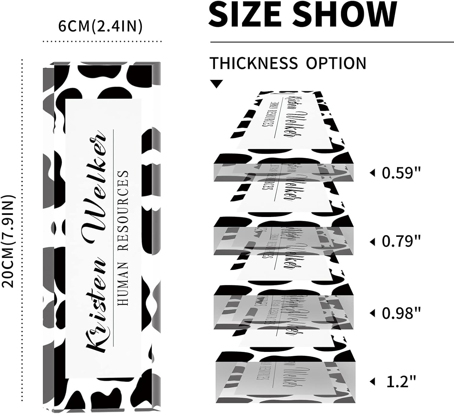- HIGH QUALITY - The Personalized Name Sign Plates Are Made Of High Quality Crystal Clear Acrylic Blocks. This Office Nameplate Will Stand Out On Any Desk!We use high-tech UV printers to print on quality clear acrylics glass so you can visualise your memories.