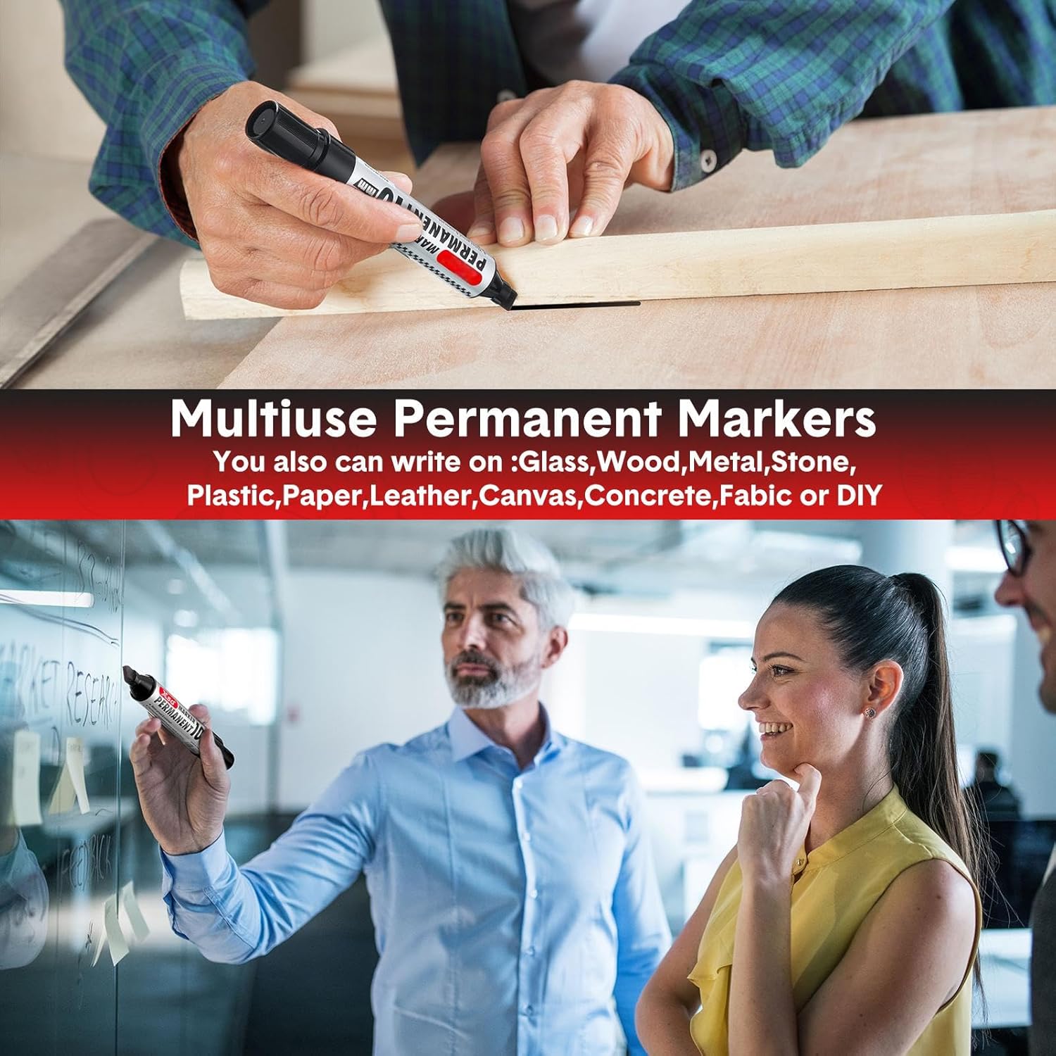 - Practical Chisel Tip: each black permanent marker comes with a chisel tip, which can draw wide and highly visible lines; This chisel tip enables you to mark or draw on almost all surfaces, and the contents you mark are visible from different angels