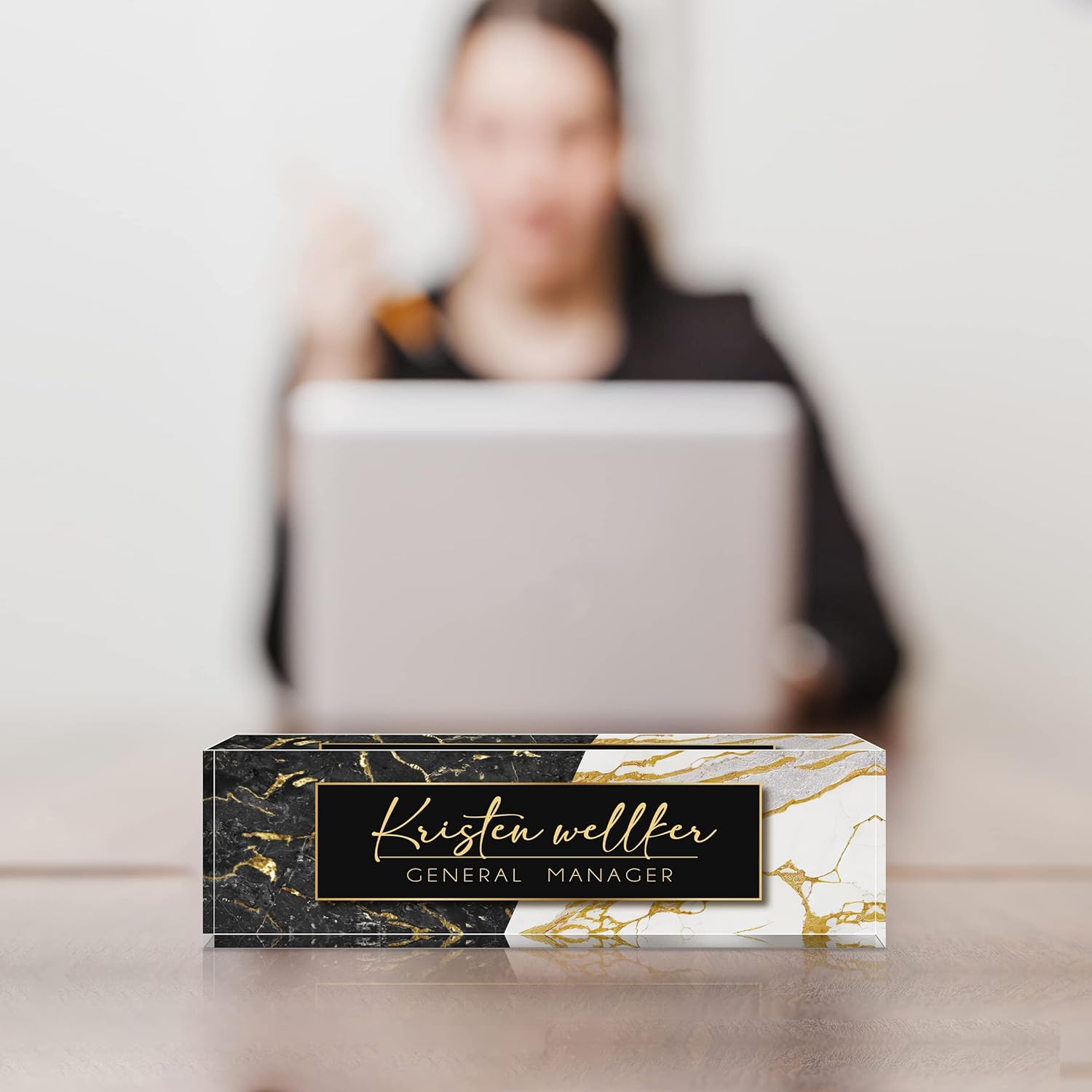 Desk Name Plate Personalized, Premium Marbling Acrylic Desk Name Plate, Personalized Name Plate for Desk, Office Decor for Women or Men Coworkers, Boss, Employee, Teacher