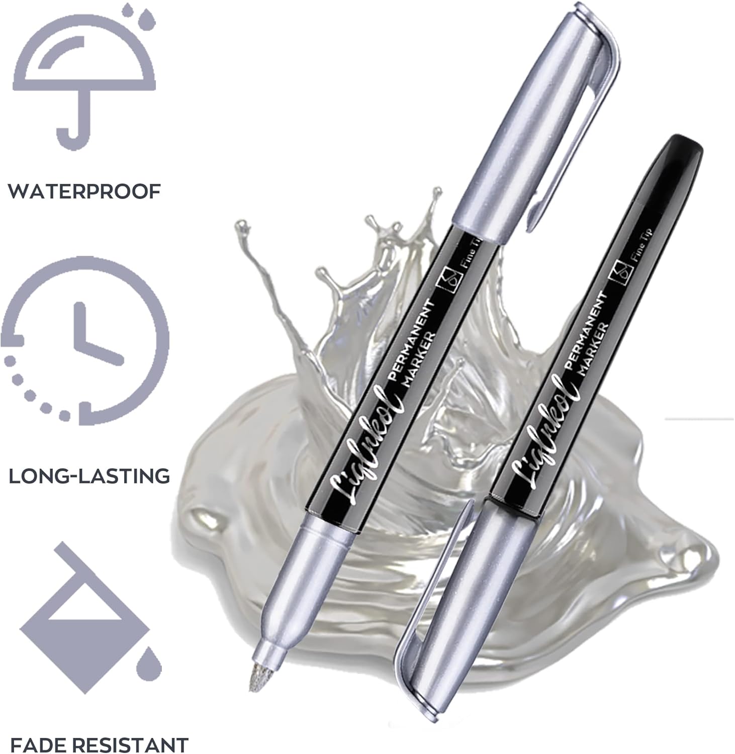 - Quality Material:LiqInkol Silver Metallic Permanent Markers are made of high-quality water-based ink, The point is fine, the writing is smooth, the color is vibrant, and the metallic luster is emitted. Suitable for opaque dark color paper, excellent effect on dark material.