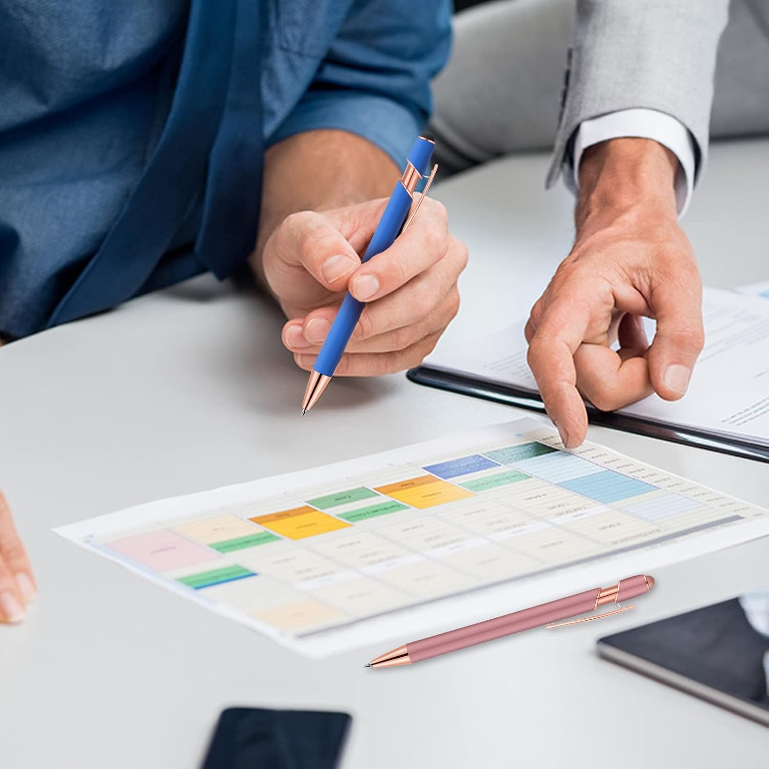 12 PCS 2 in 1 Stylus Ballpoint Pen with Stylus Tip, 1.0 mm Black Ink Metal Pen Stylus Pen for Touch Screens (Rose Gold & Light Blue)