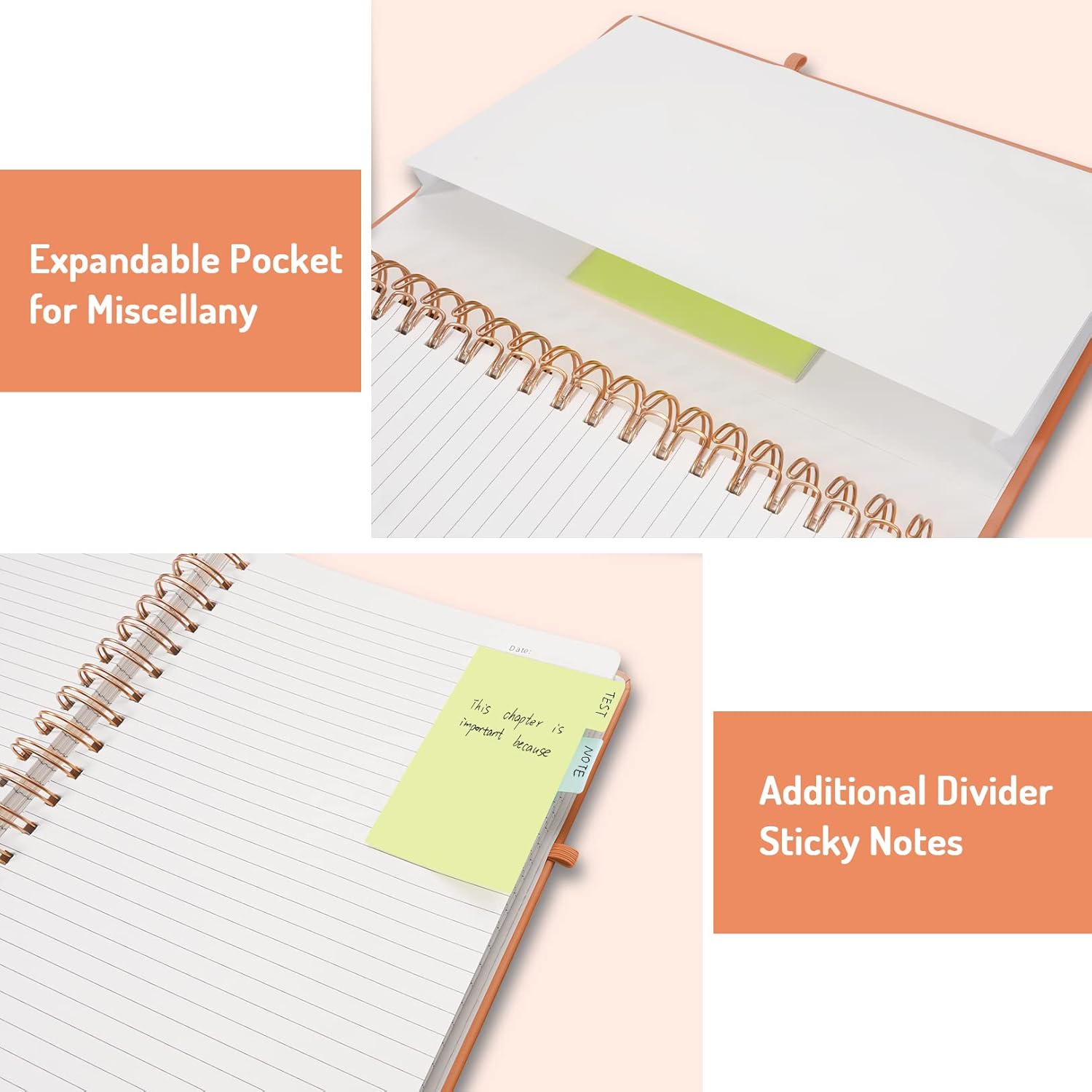 - Inner Pocket & Elastic Closure: Come with an elastic closure band, not allowing the notebook to open accidentally, so pages stay safe during transport. The back cover includes an expandable pocket for miscellany. Tabbed sticky notes and a handy pen loop holder are included.