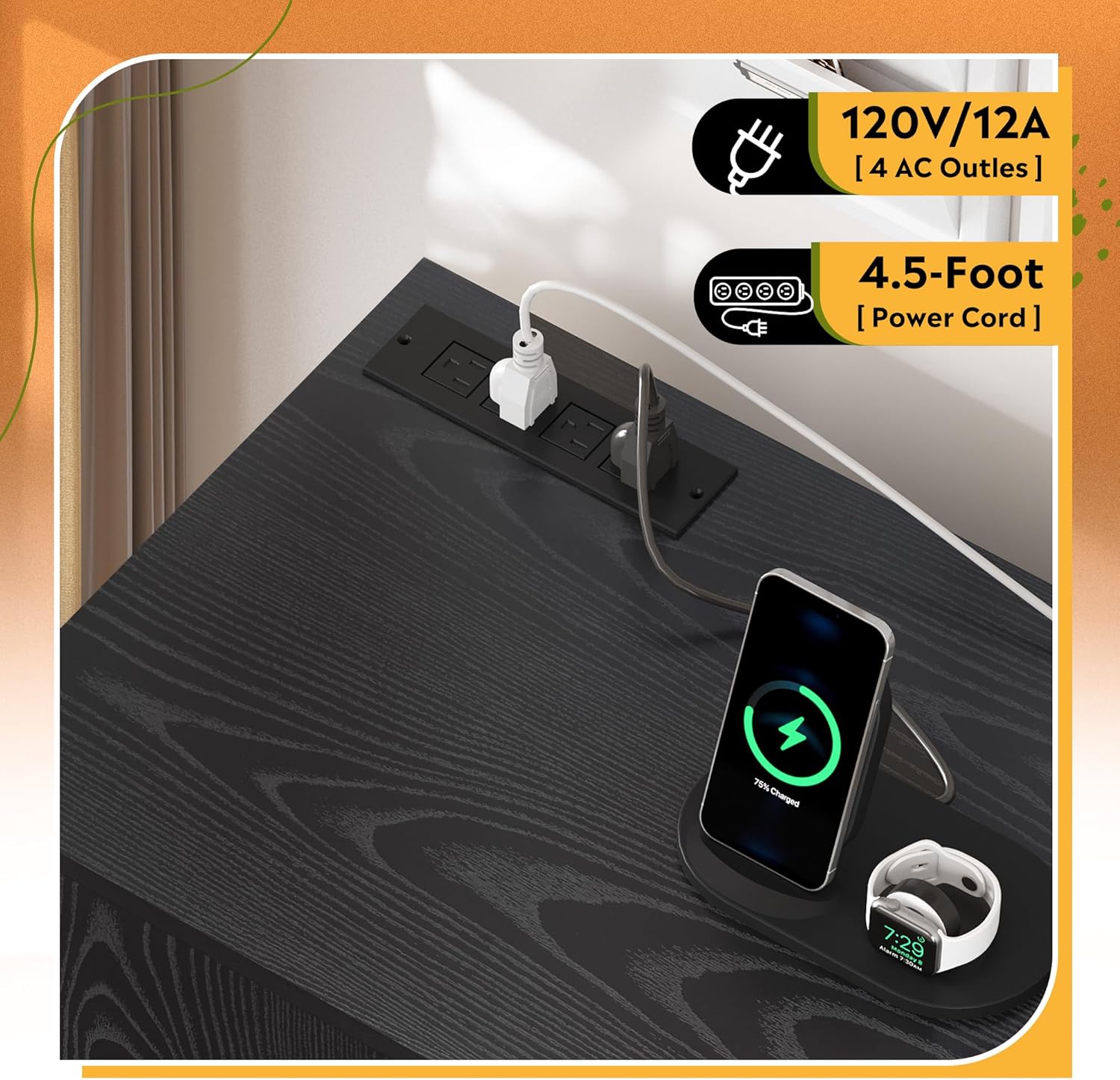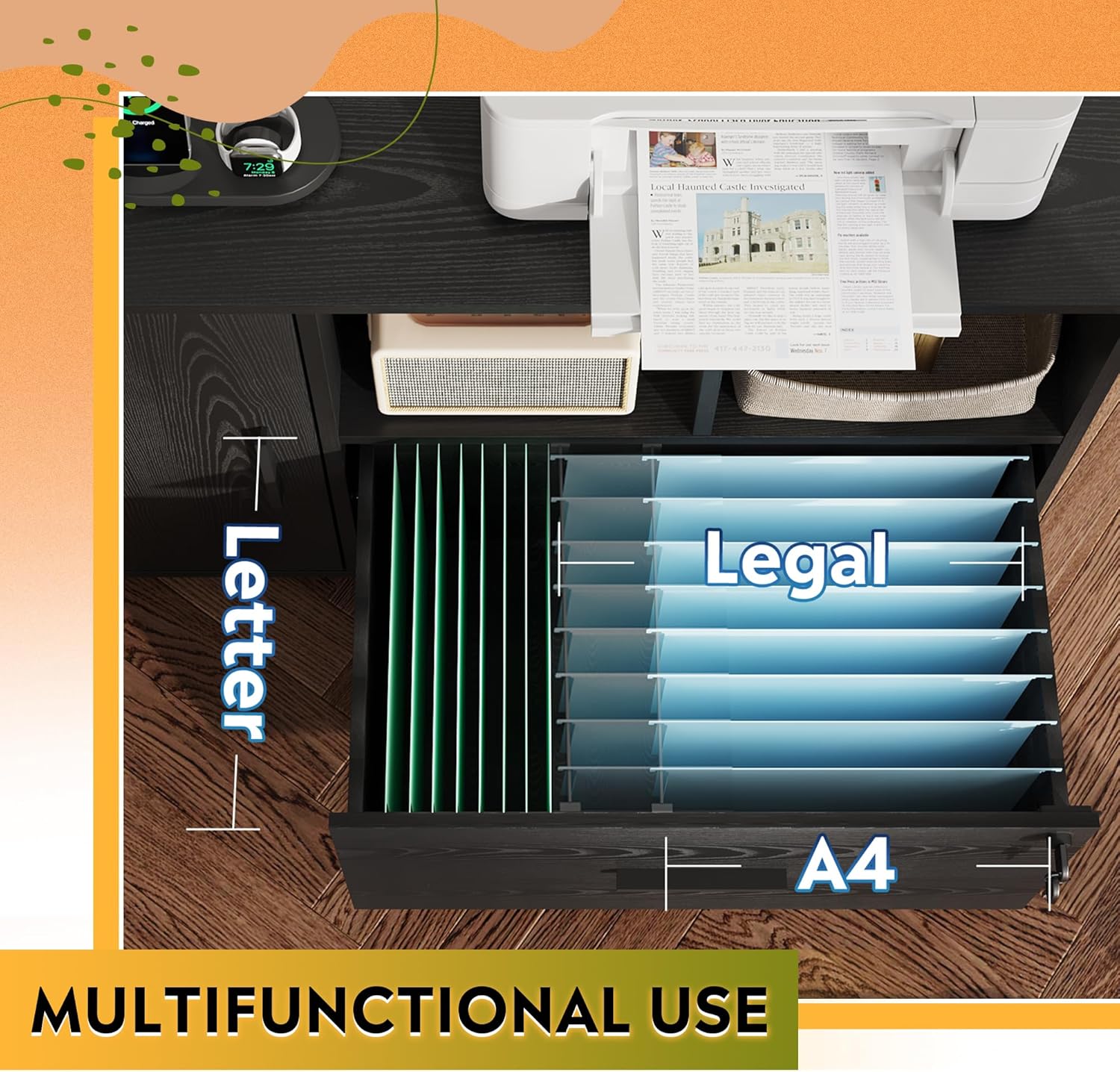 - Make Charging Convenient: The chargeable file cabinet includes 4 AC outlets on top, which offers the flexibility to charge your printer, computer, phones and other office equipment.