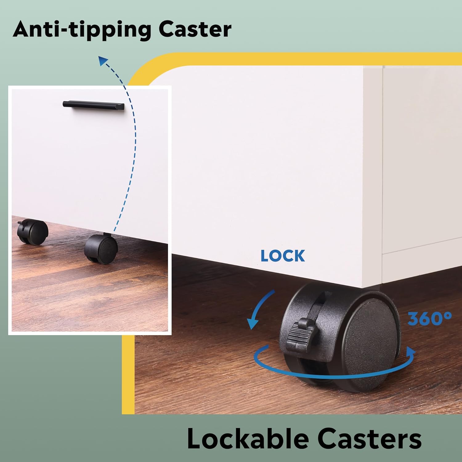 - ăEasy to Moveă Equipped with five 360° swivel wheels, including 2 front lockable wheels and 1 anti-tip wheel for stability. Move your filing cabinets anywhere you like without worrying about it tipping over.
