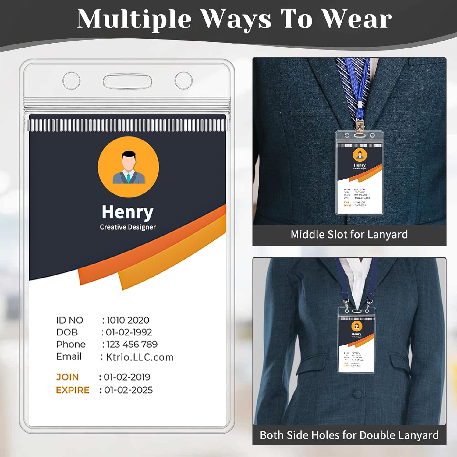- Waterproof and Dust-proof - The name tag holder features a resealable zipper closure for easy opening and closing. Good sealing can effectively prevent water or dust from entering, keeping cards dry, clean and long-lasting. You can safely put your ID card, work card or credit card in it.