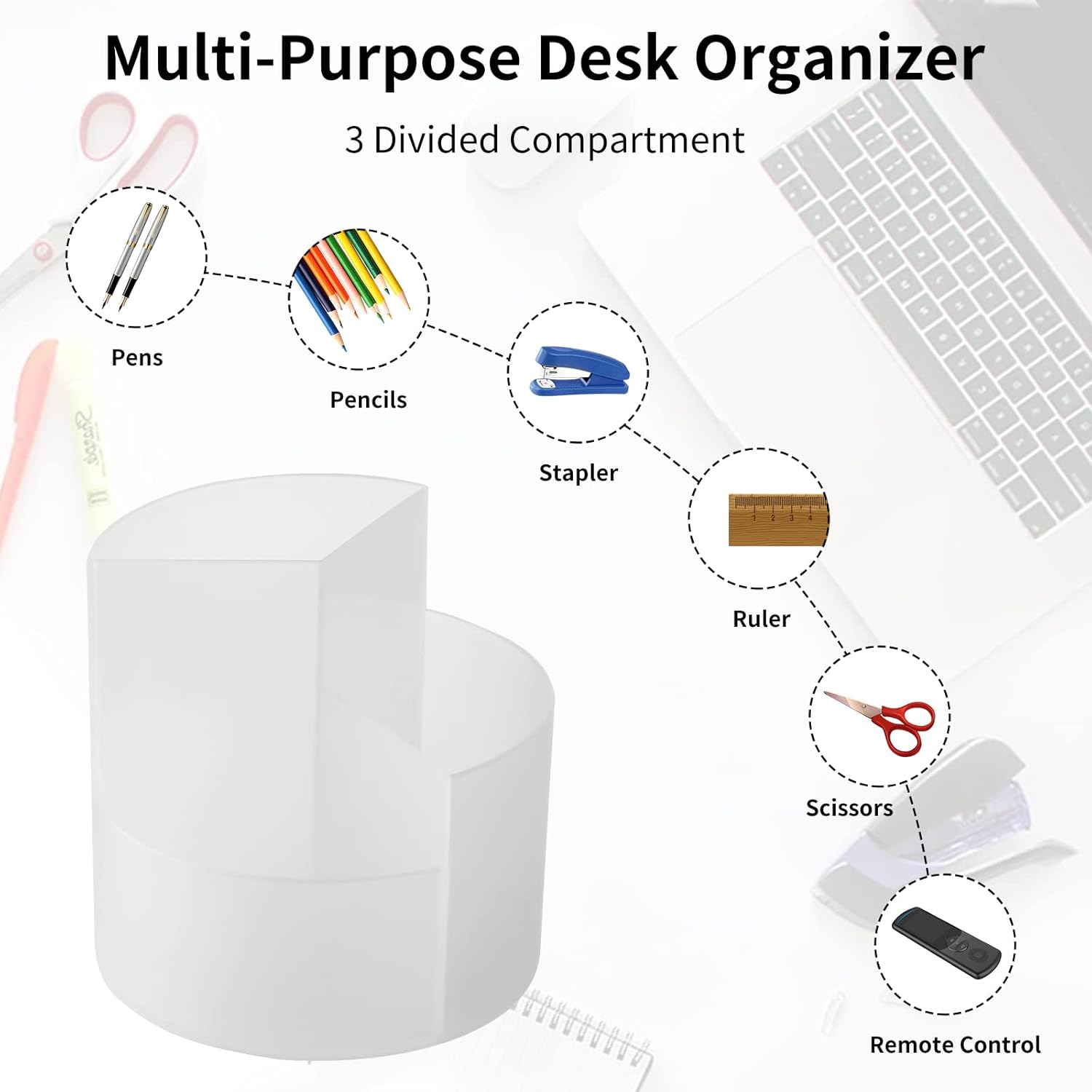 Desk Pencil Pen Holder, 3 Slots 360-Degree Spinning Organizers, Desktop Storage Stationery Supplies, Cute Cup Pot for Office, School, Art Supply, Kids - Clear