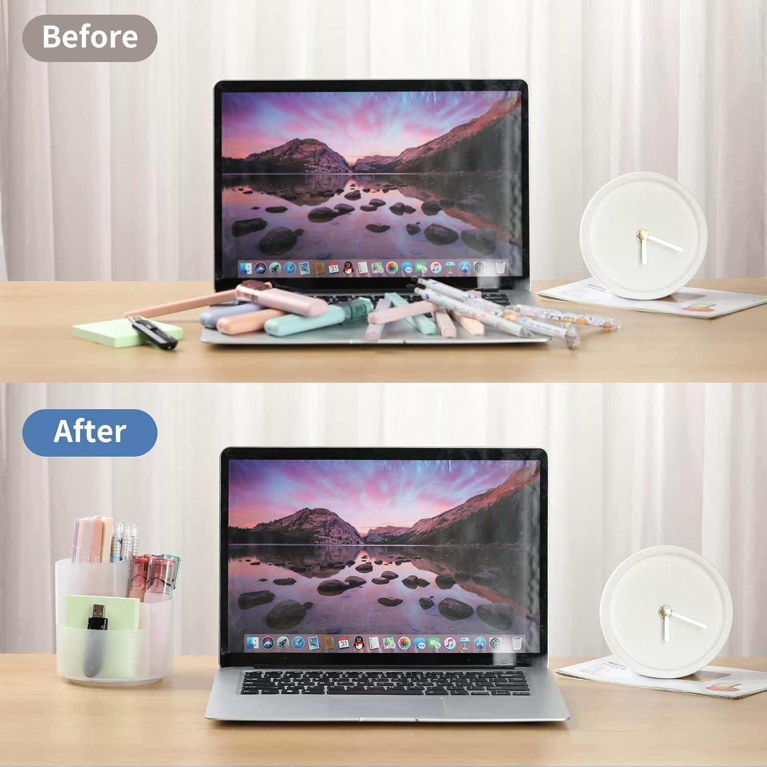 - [360-degree rotatable design] This rotating pen holder can be turned up to 360-degree rotation. It spins smoothly all around without getting stuck. Easy to access, easy to get from any angle. Save time to find your pen or pencils, always keep your desk tidy and organized. And it enables you to improve your working efficiency.