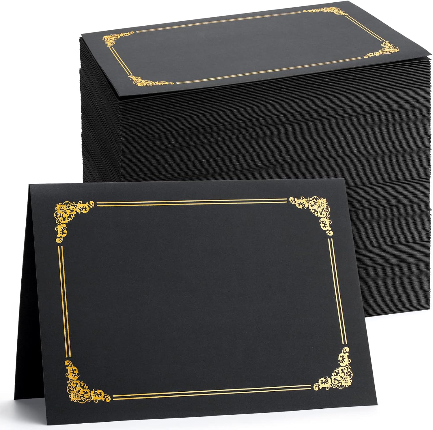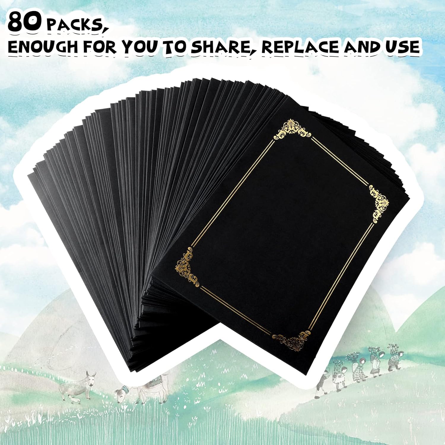 Fainne 80 Pieces Certificate Holders Diploma Holders Document Holder Certificate Covers Certificate Folders with Gold Foil Border for Letter Size 8.5 x 11 Inches Diploma Documents Awards (Black)