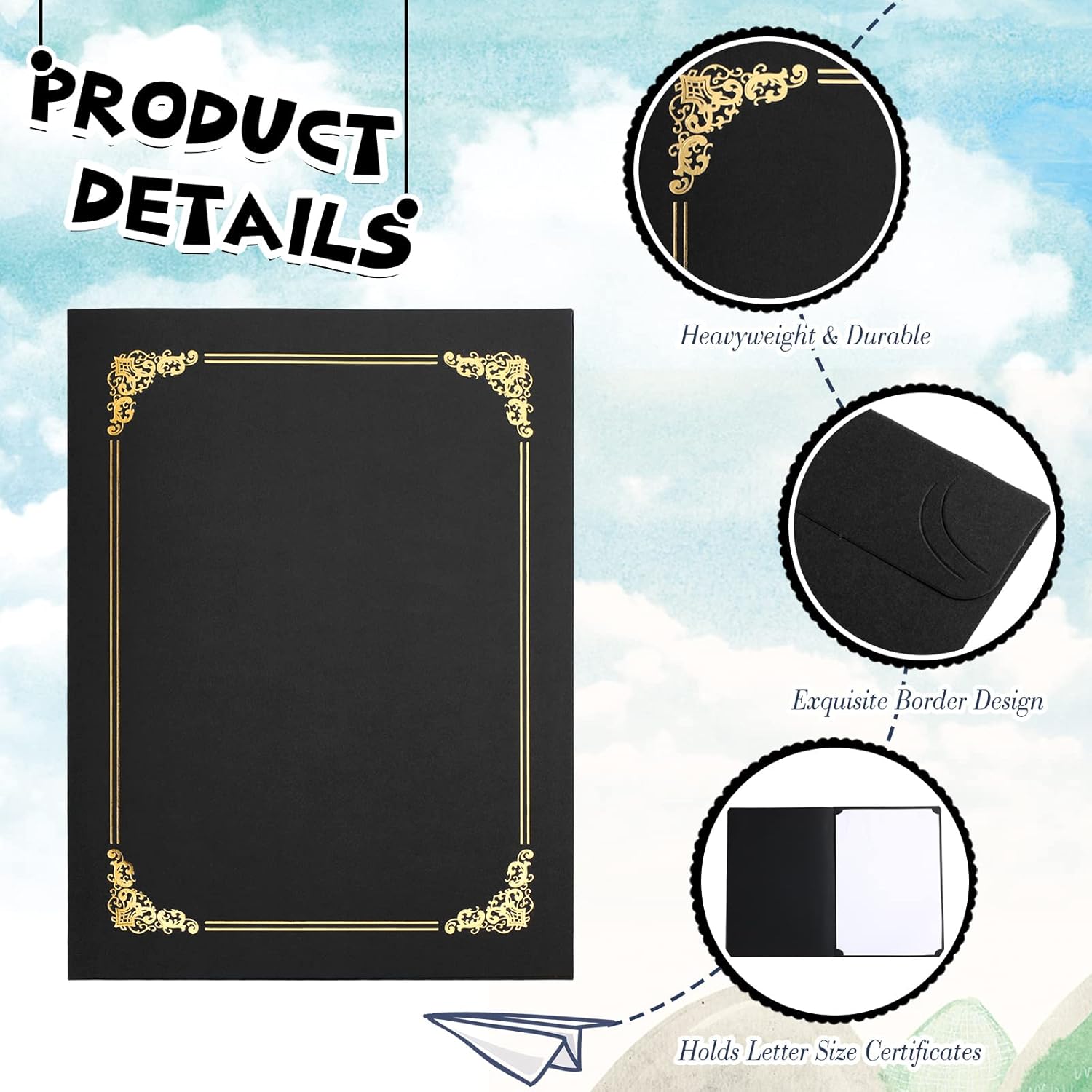 - Exquisite Design for Your Application: the cover color of the certificate folders is black, elegant and nice; The folders include 4 corners with gold foil border and lines, can increase the beauty of the cover, also convenient for you to distinguish between the front and the back