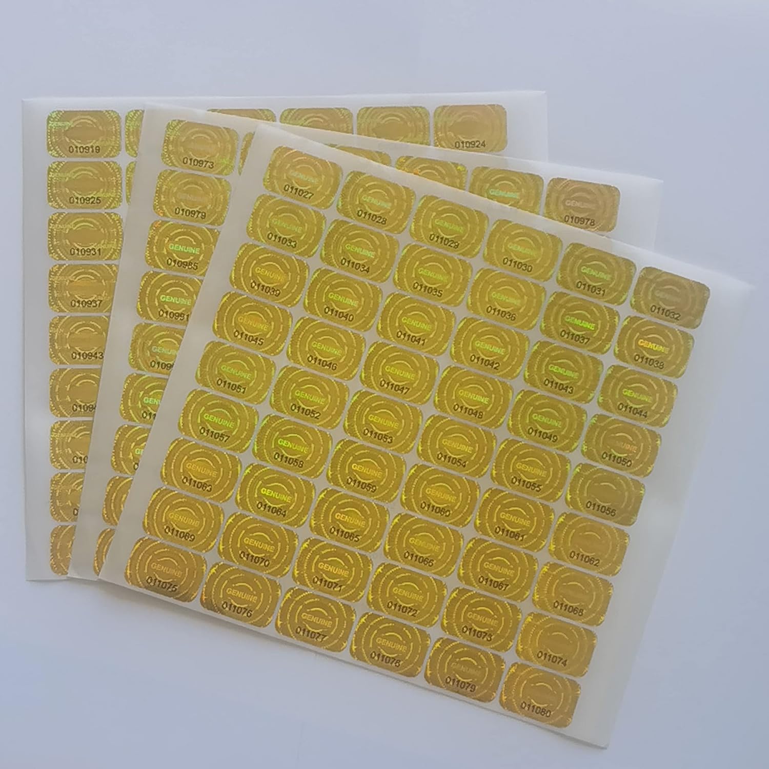 1000 pcs Tamper Proof Hologram Stickers Silver High Security Tamper Evident Warranty Seal Void Genuine Authentic Holographic Labels w/Unique Sequential Serial Numbering 0.95X0.6 inch (Gold)