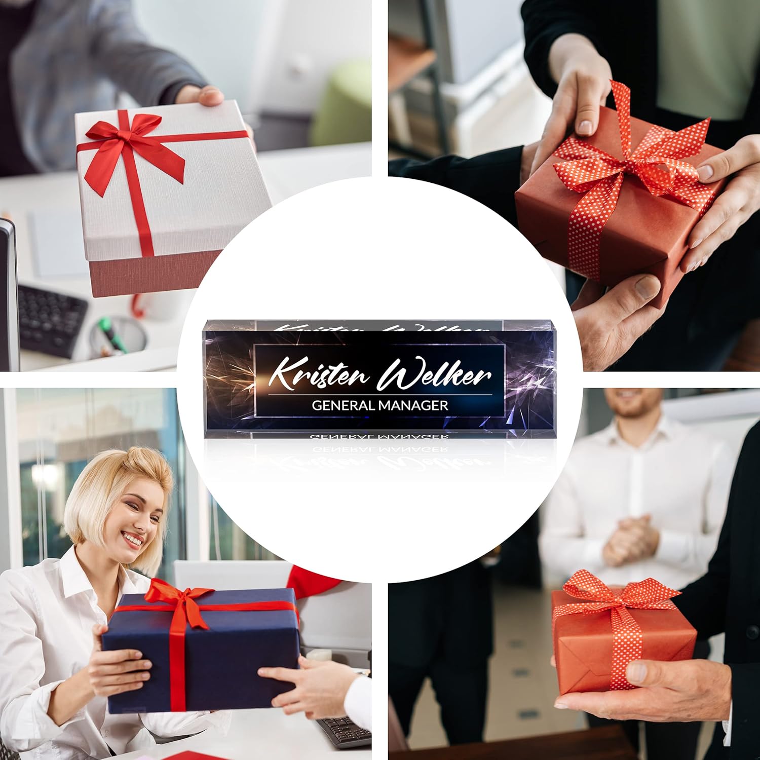 - 🎁Custom A Great Office Decor Gift: Whether for holiday, birthday or work anniversaries, DIY a unique name plate for them, this premium acrylic glass block name plate will impress! Let your coworkers know you appreciate them.