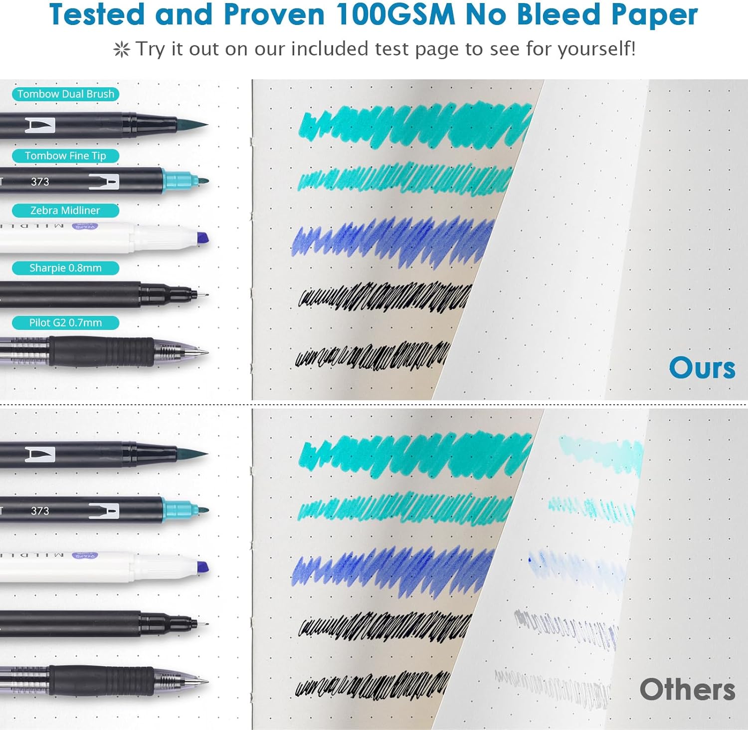 - 【Thick Paper for Writing Without Limits】Large B5 hardcover notebook (7.6"x 10"/193mm x 254mm), total 320 pages, includes 312 numbered pages(156 sheets). Each page includes 1887 dots with 5mm spacing: X37*Y51. Our INNOVATIVE PAPER TECHNOLOGY on 100GSM thick paper ensures a perfect canvas for your ideas - no bleed, no ghosting, as confirmed by tests with various pens commonly used in bullet journaling.