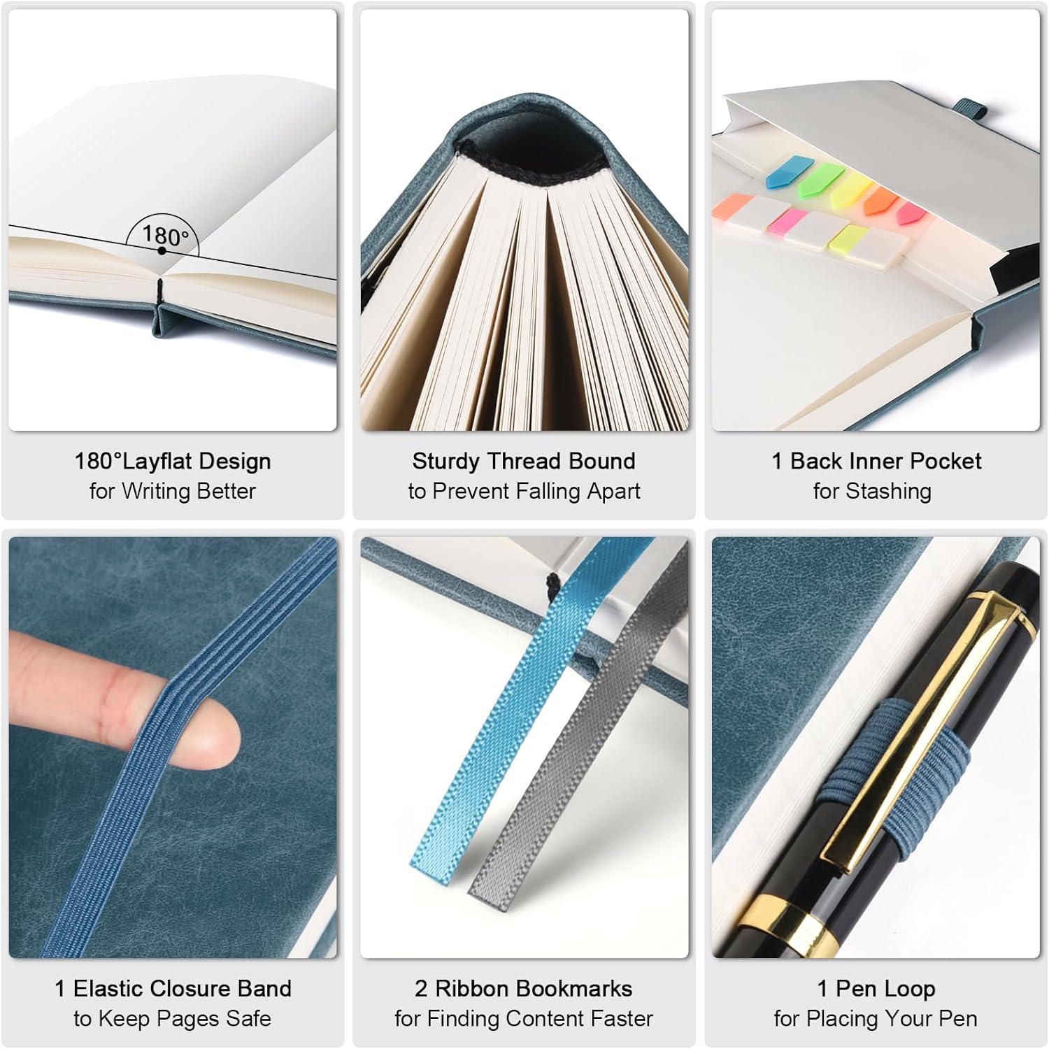 - 【Tough & Stylish Hardcover】Crafted from TOP-NOTCH VEGAN LEATHER with distinctive texture, which is animal-friendly and boasts a luxurious look. DURABLE hard cover provides superior protection to your pages compared to softcover, while offering a stable writing surface. Featuring an innovative thread-bound binding that allows for easy LAY-FLAT use, catering to both right-and left-handed users.