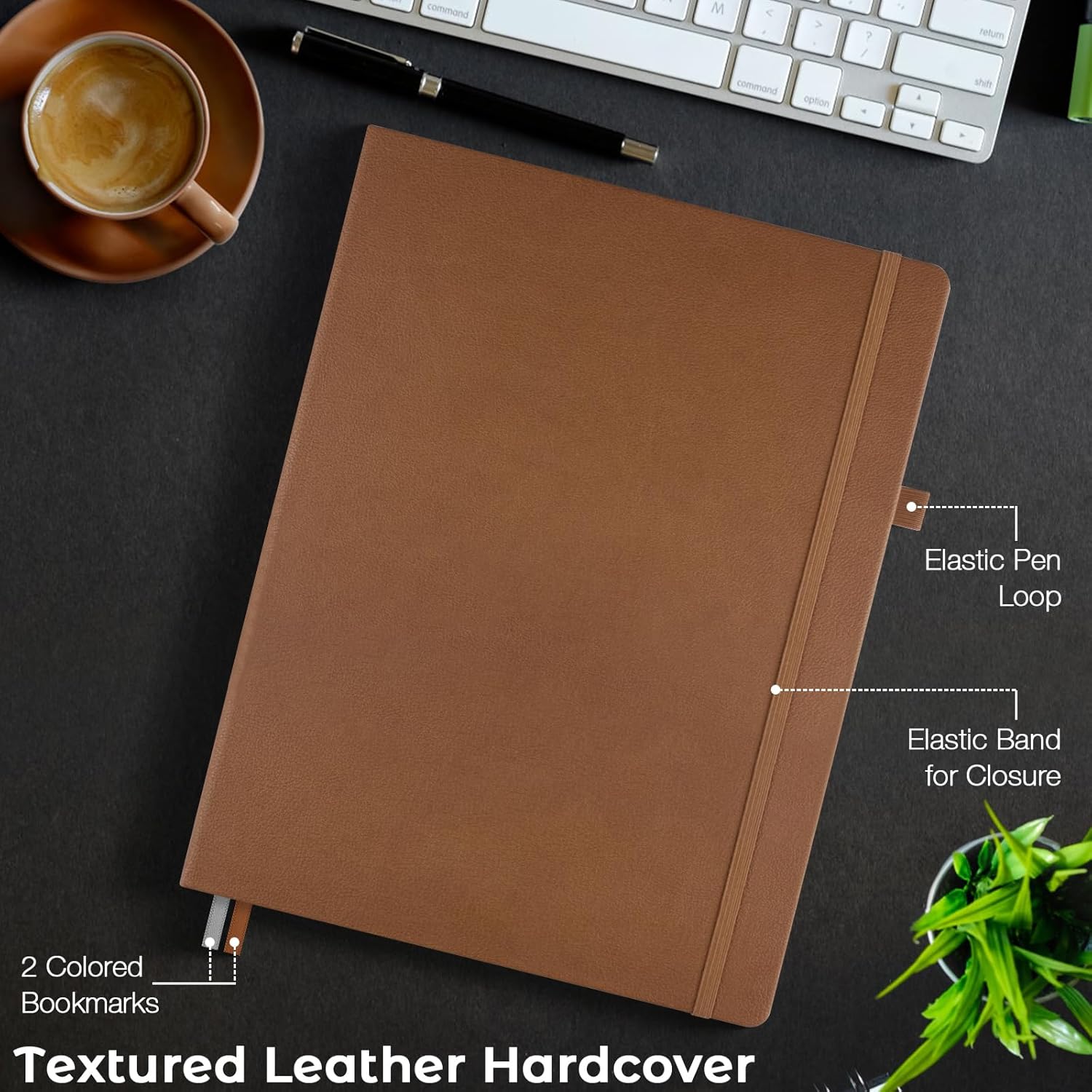 Dotted Journal, Hardcover Notebook 8.5 x 11, Dot Grid Notebook Journal for Women, Men, Large Leather Journals for Writing, Bullet, No Bleed Thick Paper, A4 Notebooks for Work, School, Notes, Brown