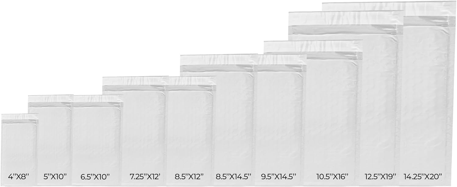 - Flexible and Versatile Bubble Mailers: Designed with ample space for shipping labels, barcodes, or handwritten notes. Available in multiple sizes, these poly mailers are ideal for shipping, storing, or packaging a wide variety of items, from lightweight to compact products.