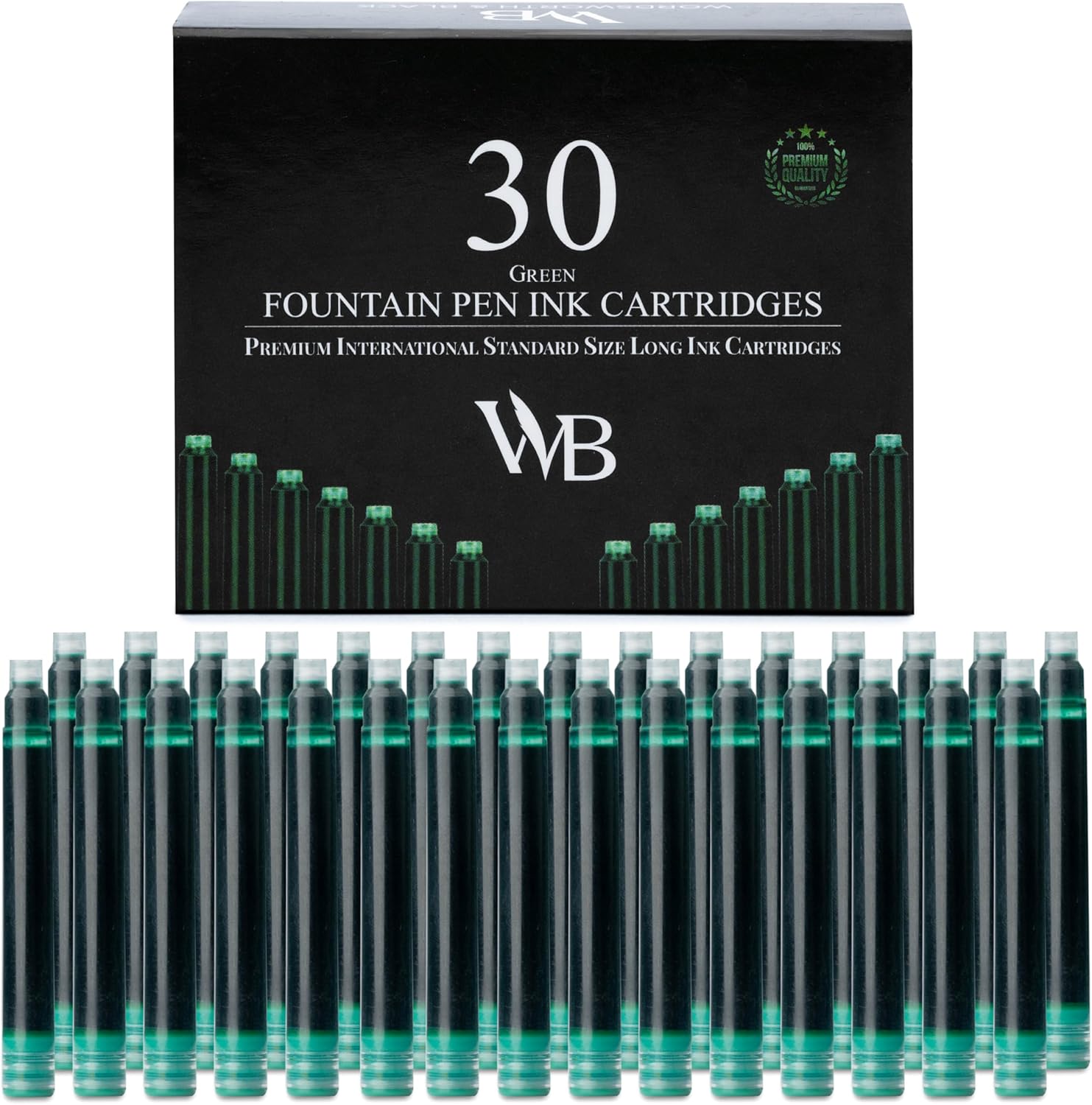 Wordsworth & Black Fountain Pen Ink Refills - Set of 30 Green Ink Cartridges - International Standard Size - Length APPR 2.3" - Base Diameter APPR 0.24" - Disposable and Generic