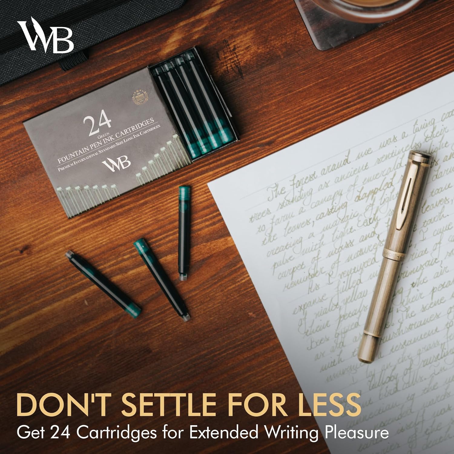 Wordsworth & Black 24 Pack Fountain Pen Ink Refills - Set of 24 Green Ink Cartridges - International Standard Size - Length APPR 2.3" - Base Diameter APPR 0.24" - Disposable and Generic